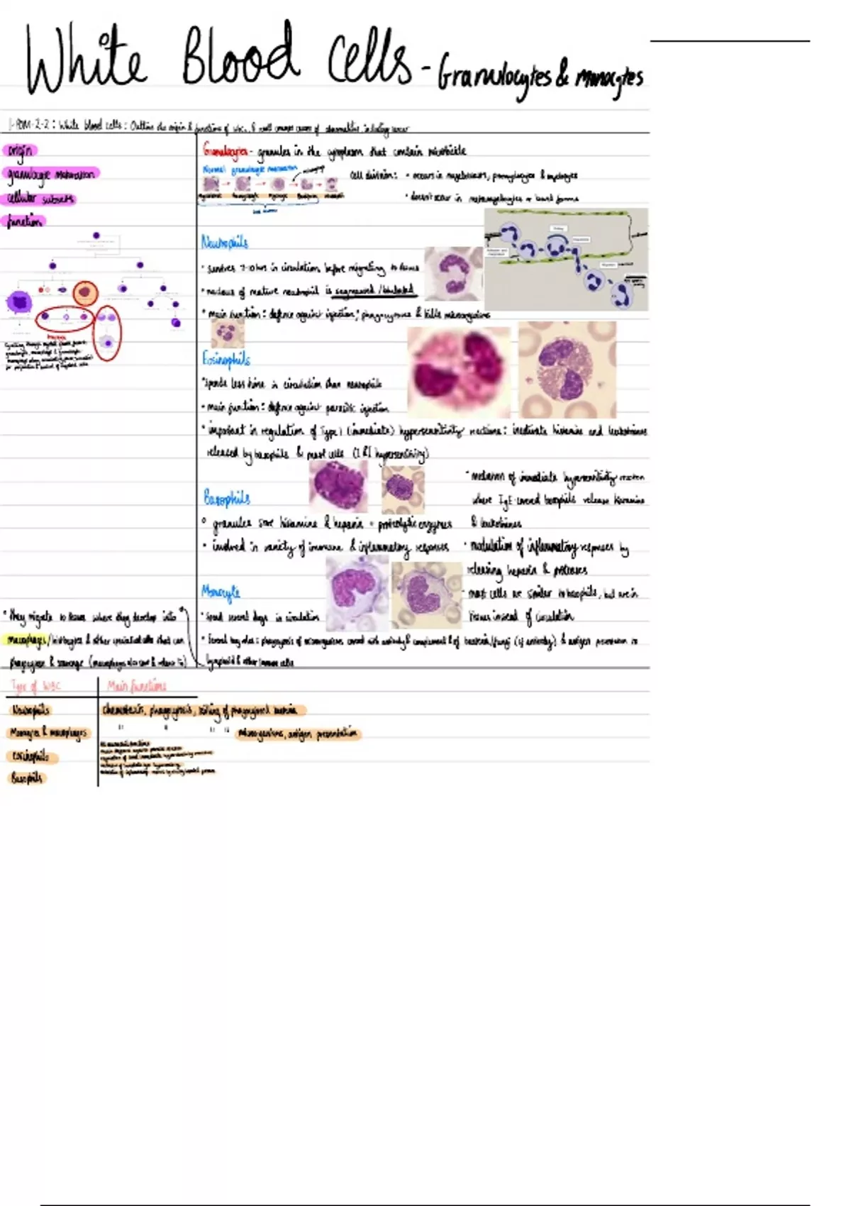 White Blood Cells Lecture Notes