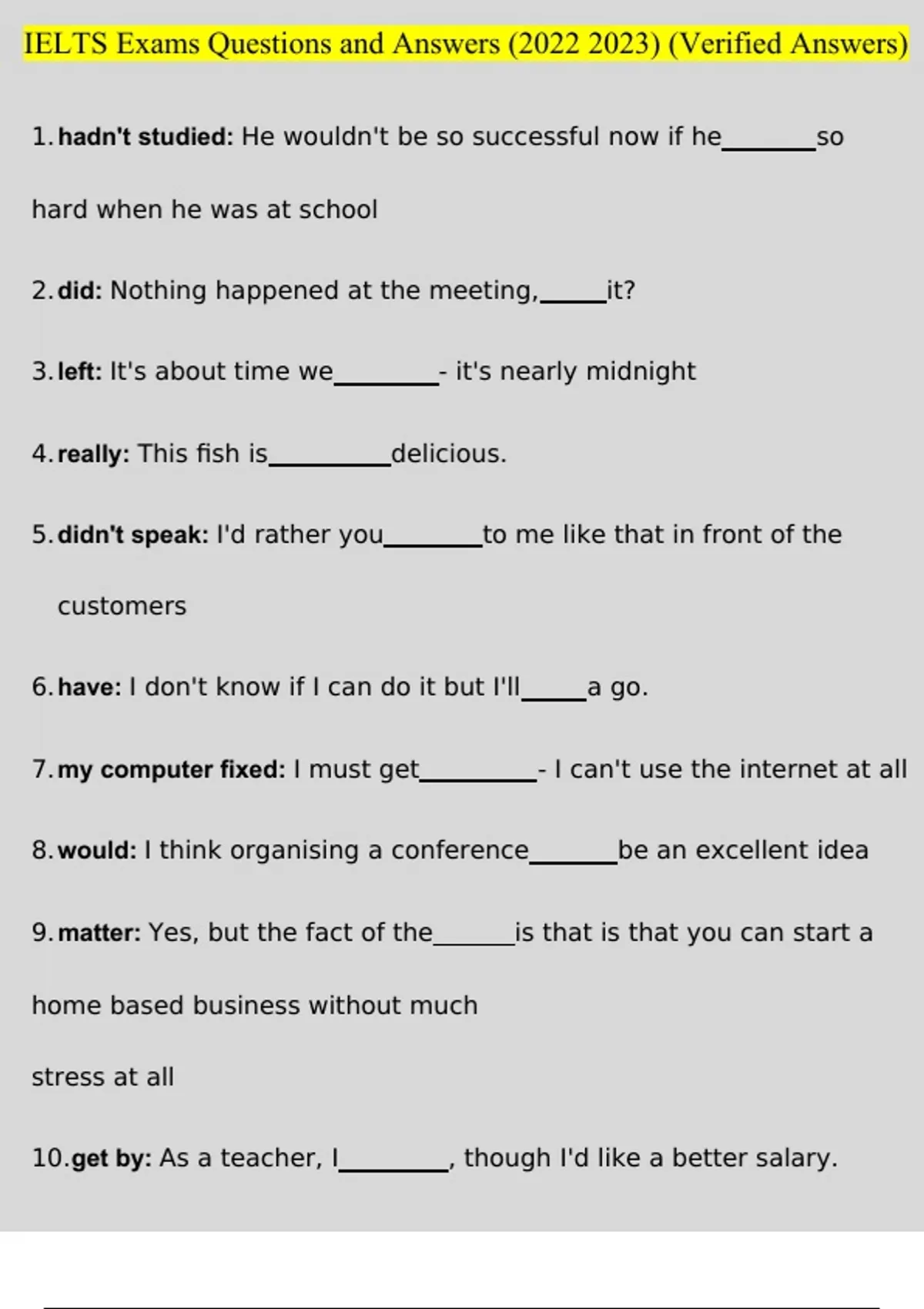 IELTS Exams Questions and Answers (2022 2023) (Verified Answers)
