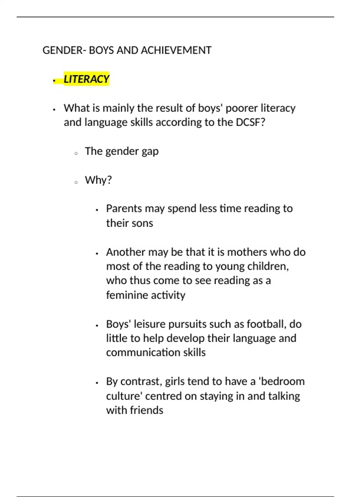 GENDER- BOYS AND ACHIEVEMENT