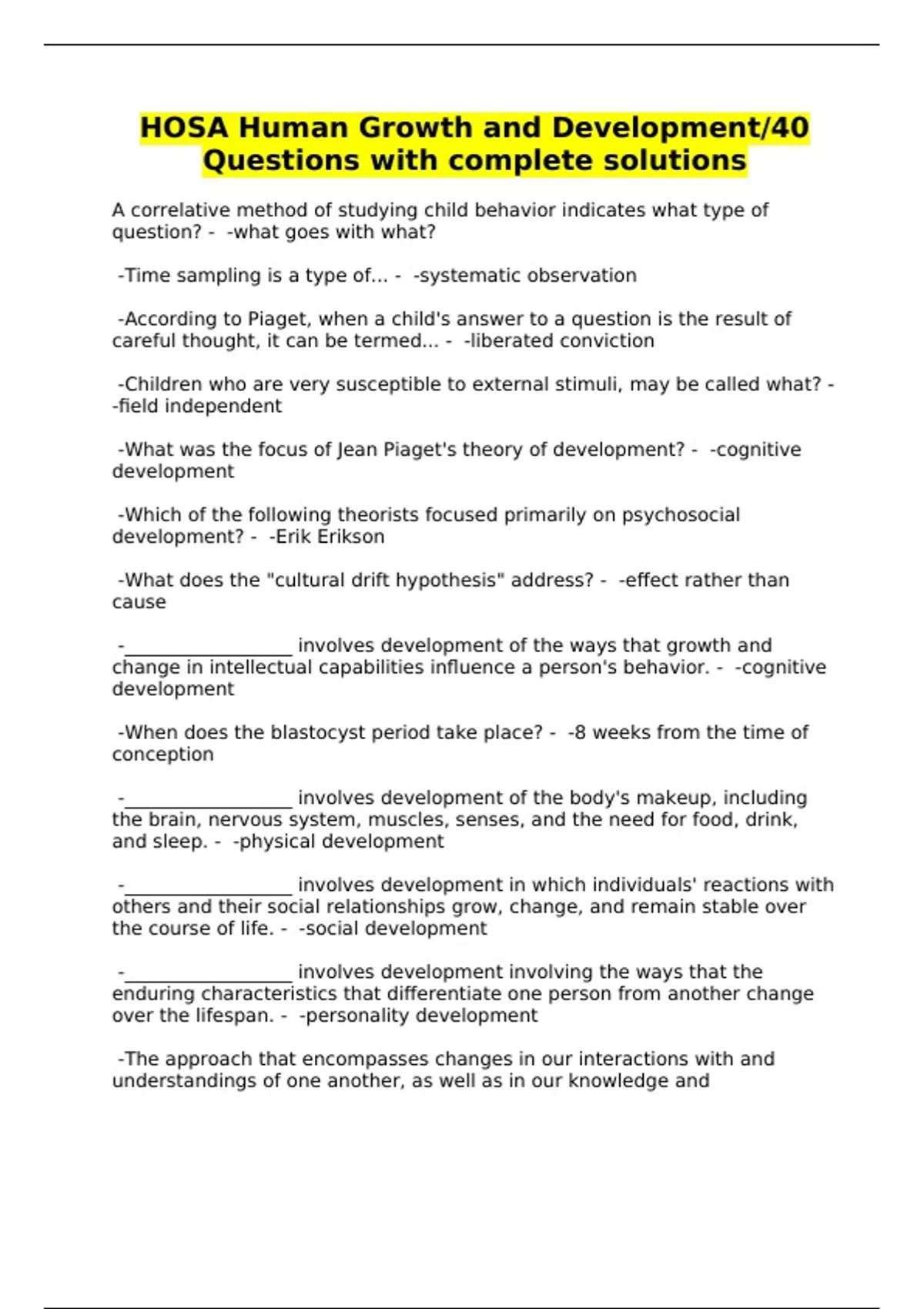 HOSA Human Growth and Development/40 Questions with complete solutions