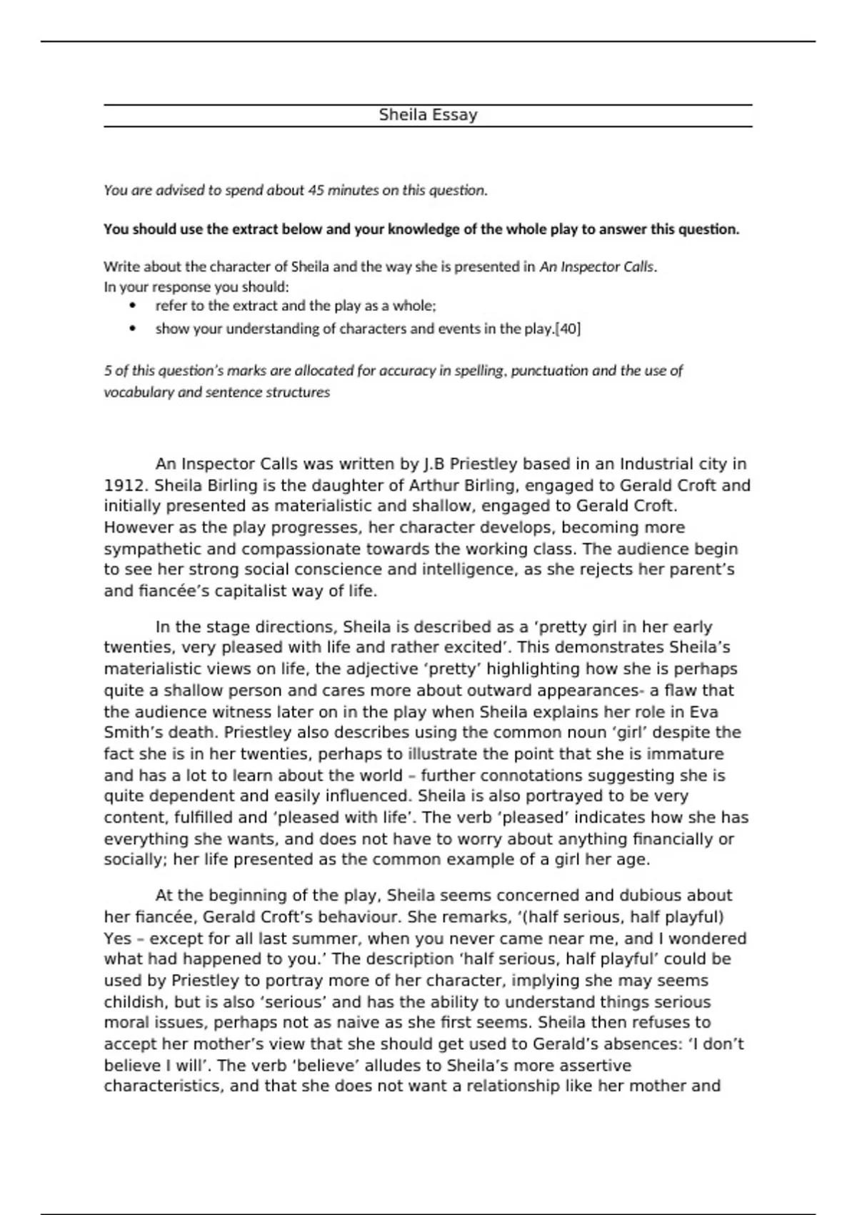 Write about the character of Sheila and the way she is presented in An Inspector Calls.
