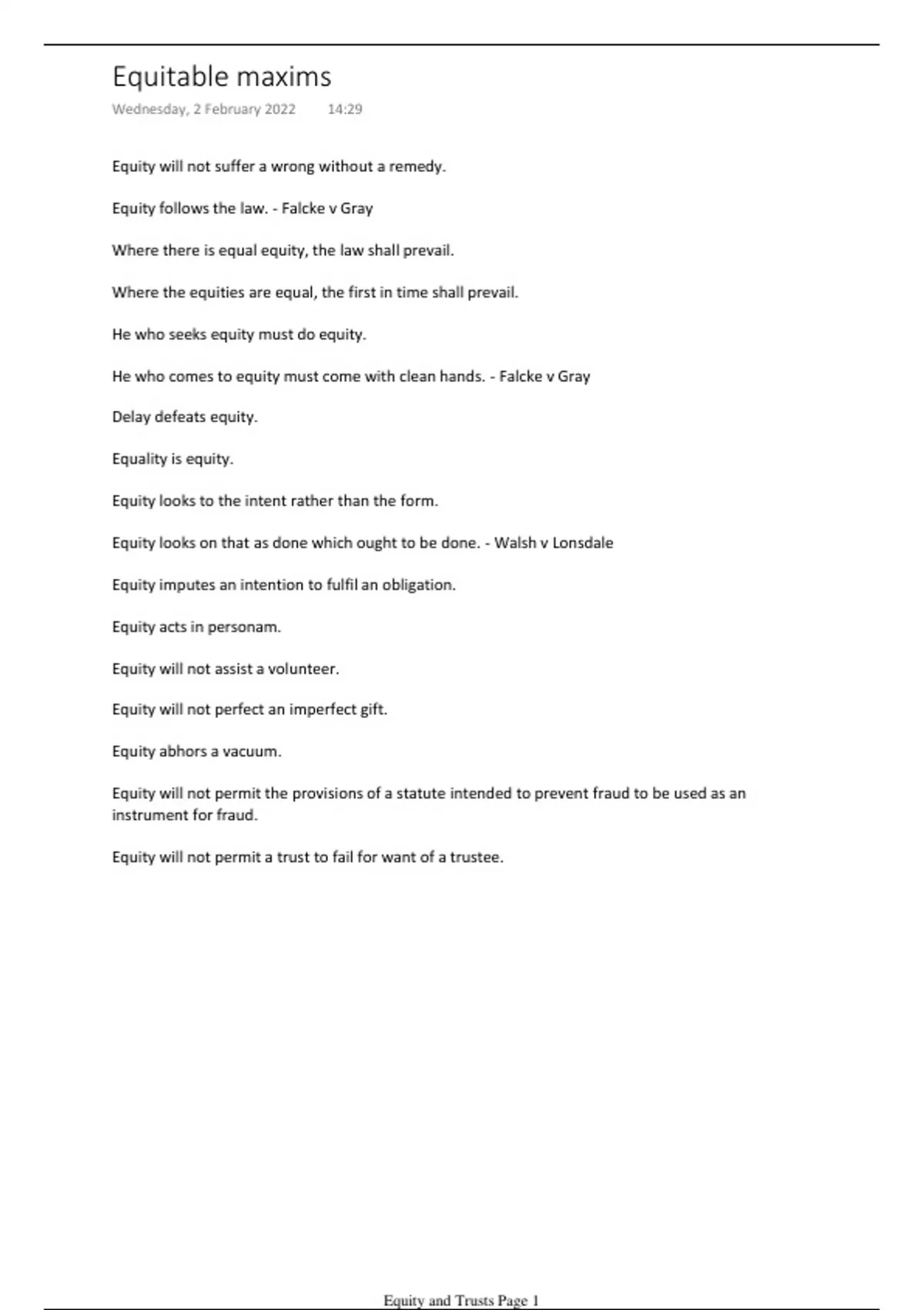 A list of maxims and translations that you will likely come across when studying the law of equity and trusts