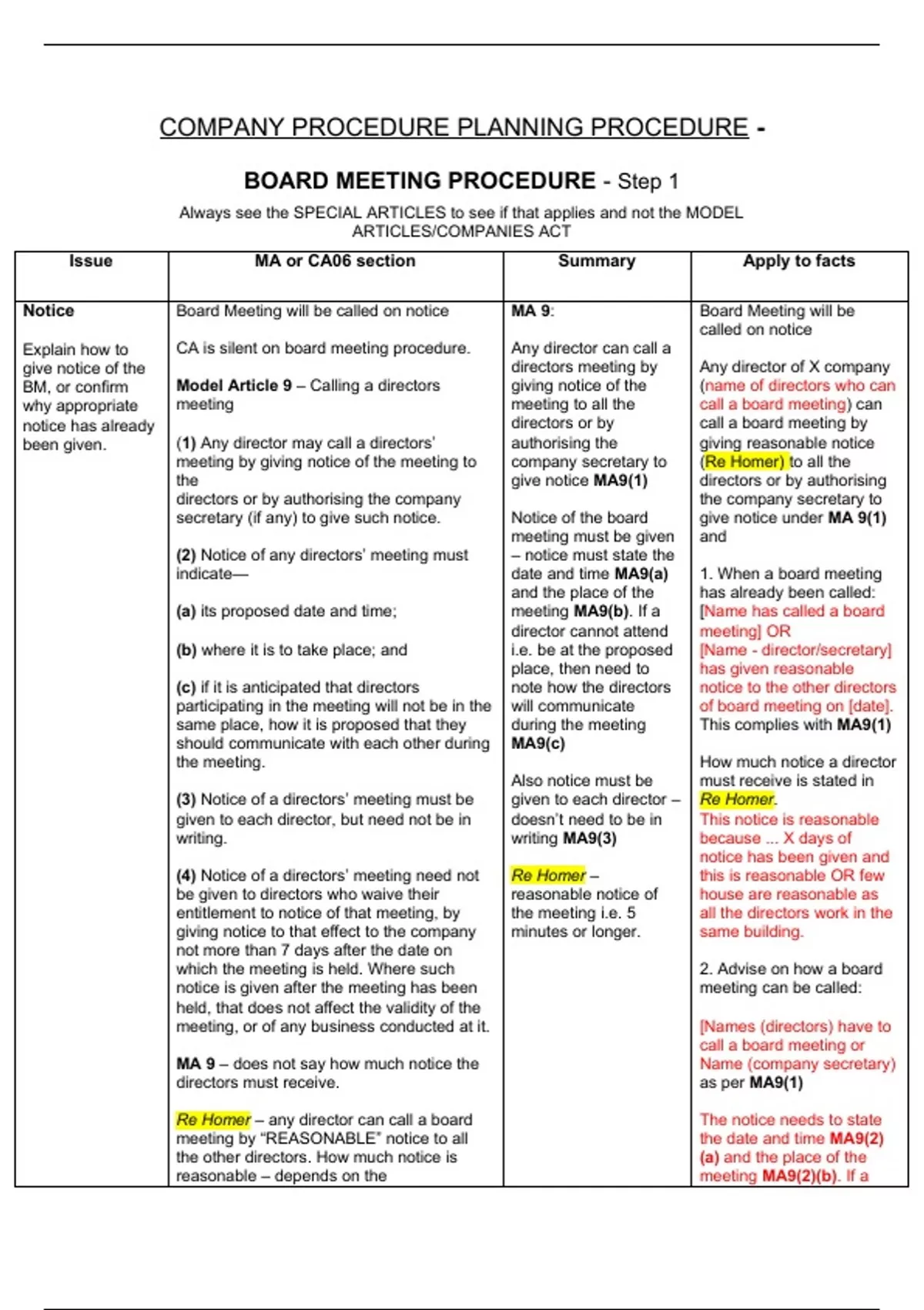 (4) Notice of a directors’ meeting need not Re Homer – this is reasonable OR few