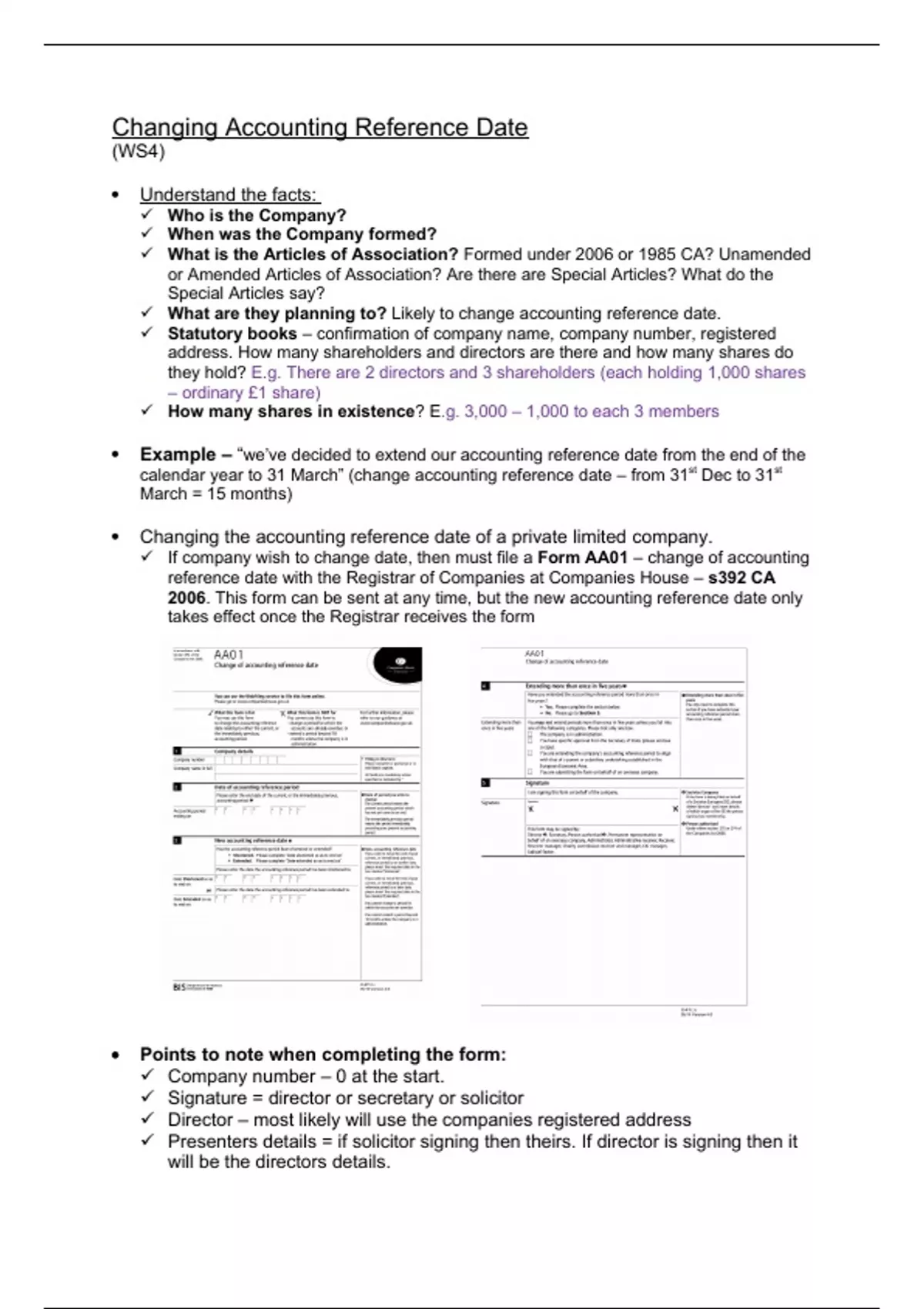 Summary Business Law and Practice - Changing accounting reference date