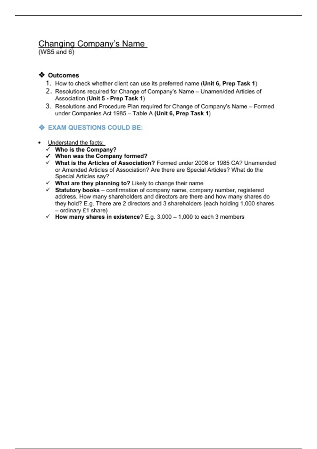 under Companies Act 1985 – Table A (Unit 6, Prep Task 1)