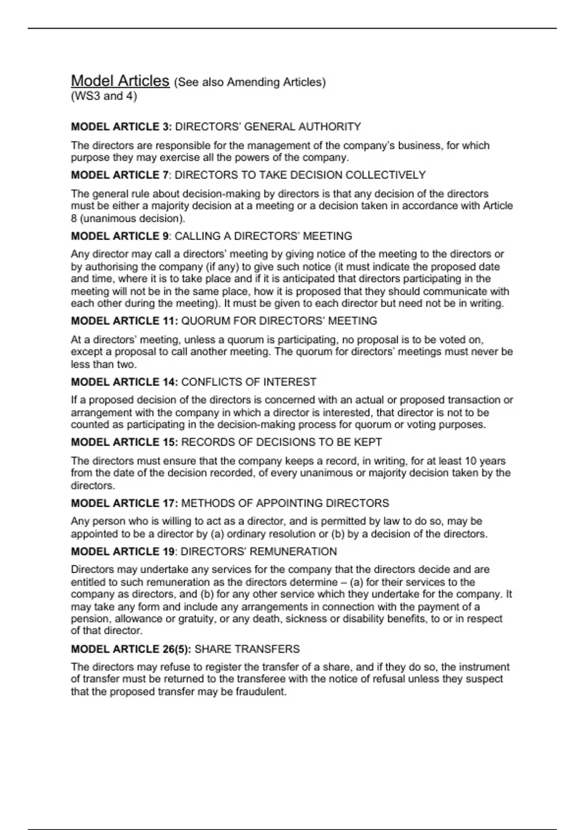 In this task, you will review some of the key provisions of the Model Articles for Private