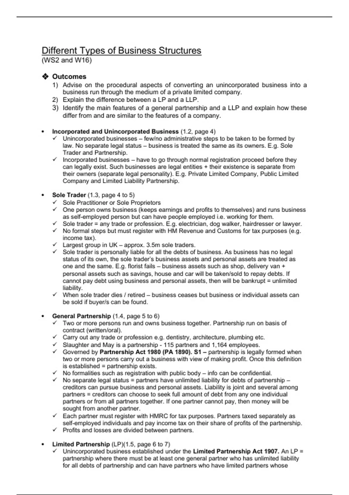 3) Identify the main features of a general partnership and a LLP and explain how these
