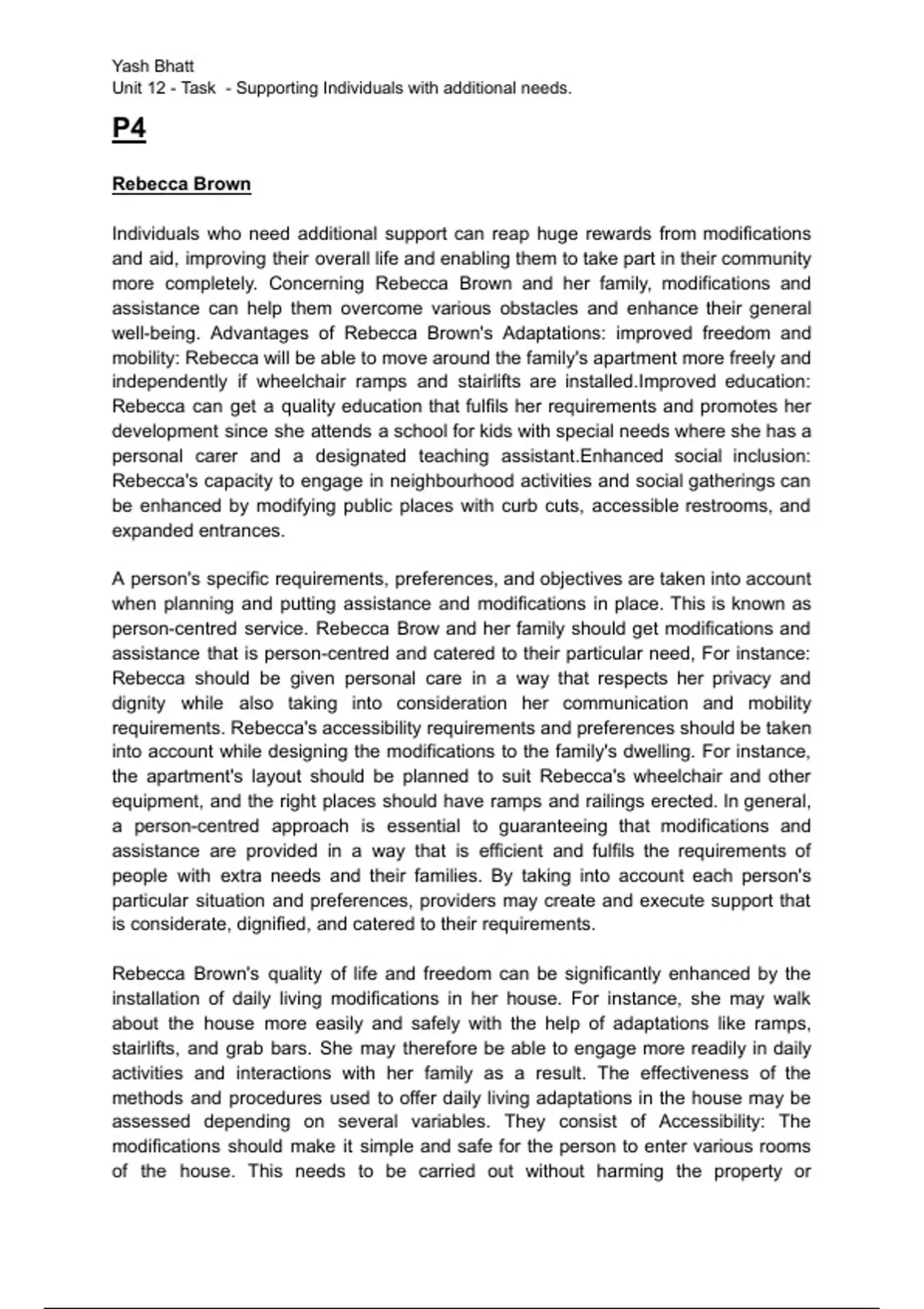 person-centred service. Rebecca Brow and her family should get modifications and