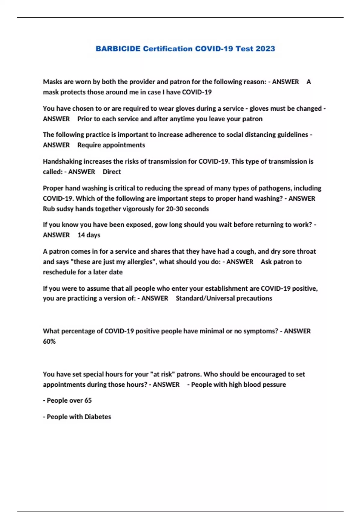 BARBICIDE Certification COVID-19 Test 2023...