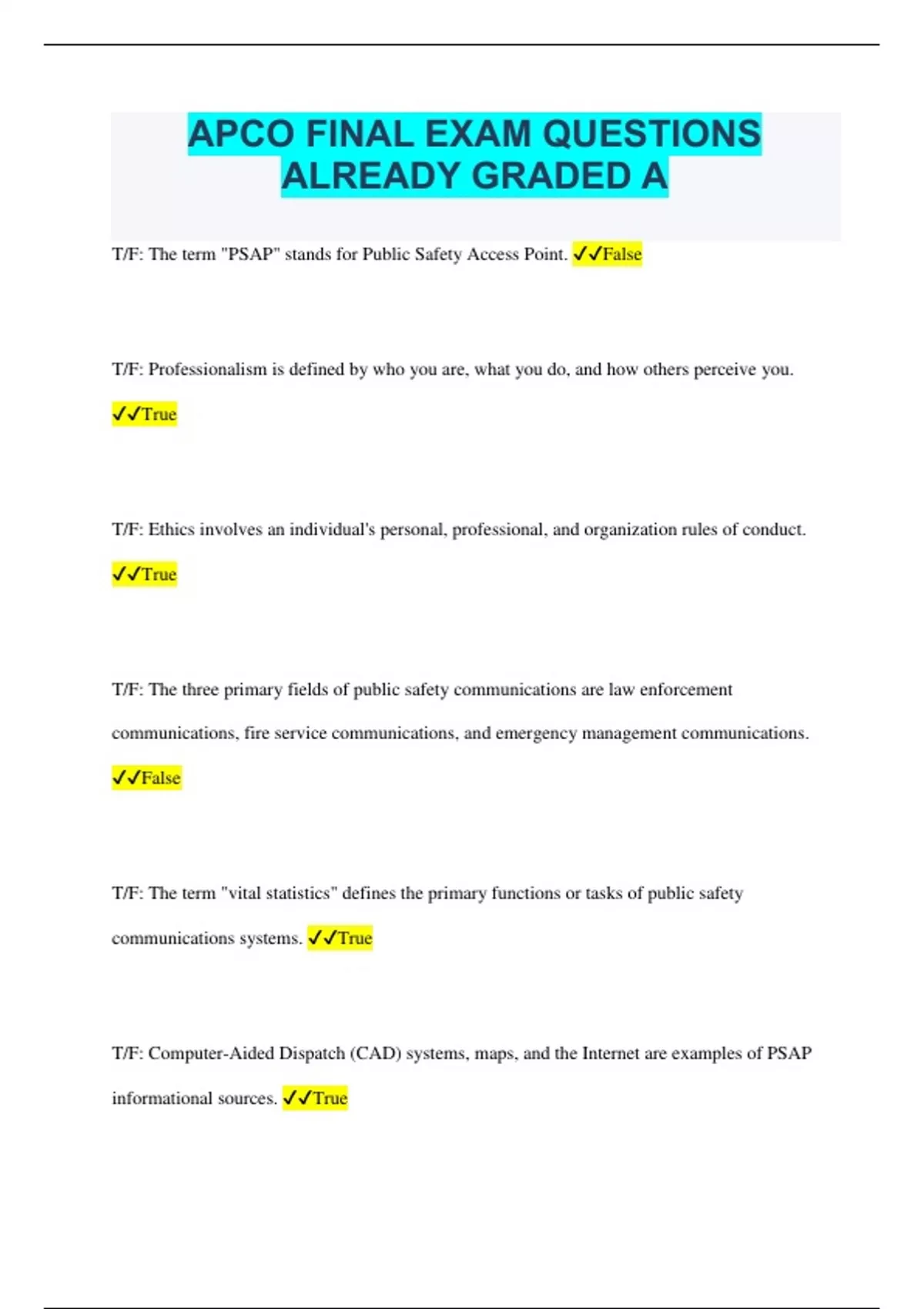 APCO FINAL EXAM QUESTIONS ALREADY GRADED A
