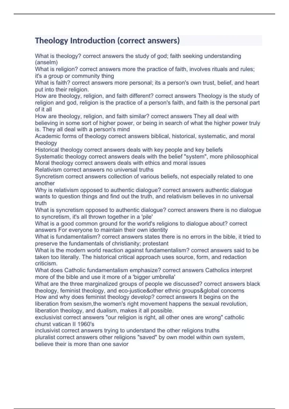What is theology? correct answers the study of god; faith seeking understanding