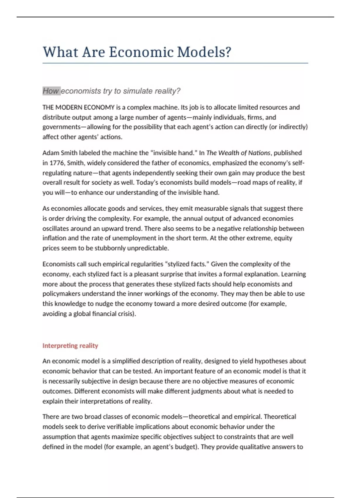 overall result for society as well. Today’s economists build models—road maps of reality, if