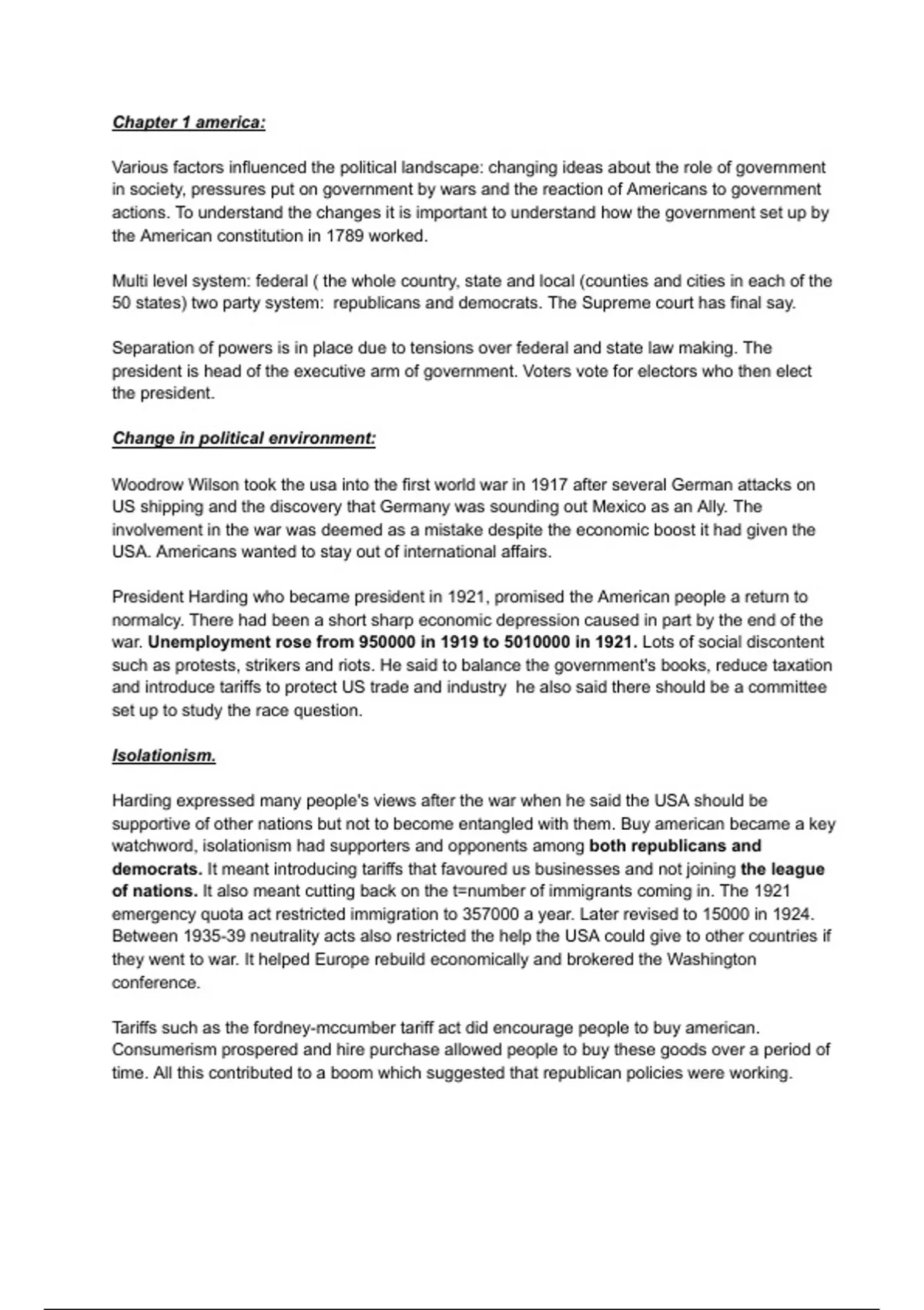 Harding expressed many people's views after the war when he said the USA should be