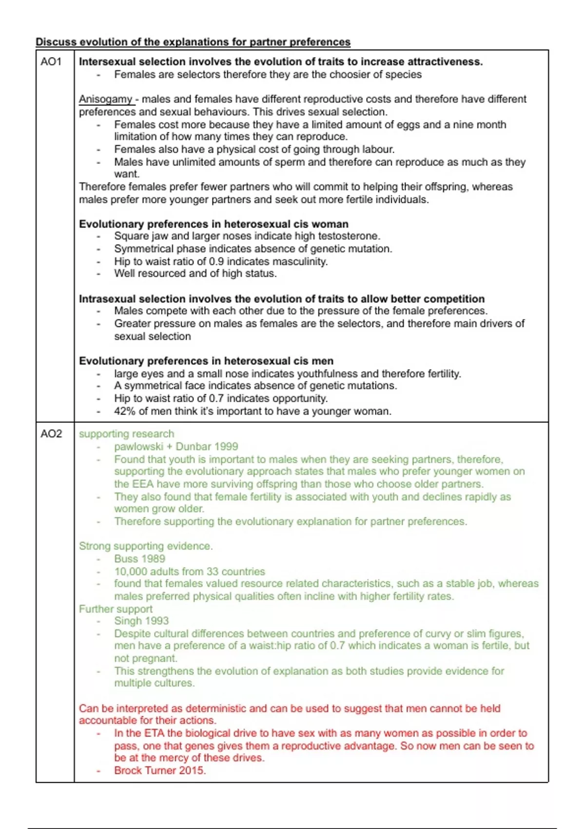 AO1 Intersexual selection involves the evolution of traits to increase attractiveness.