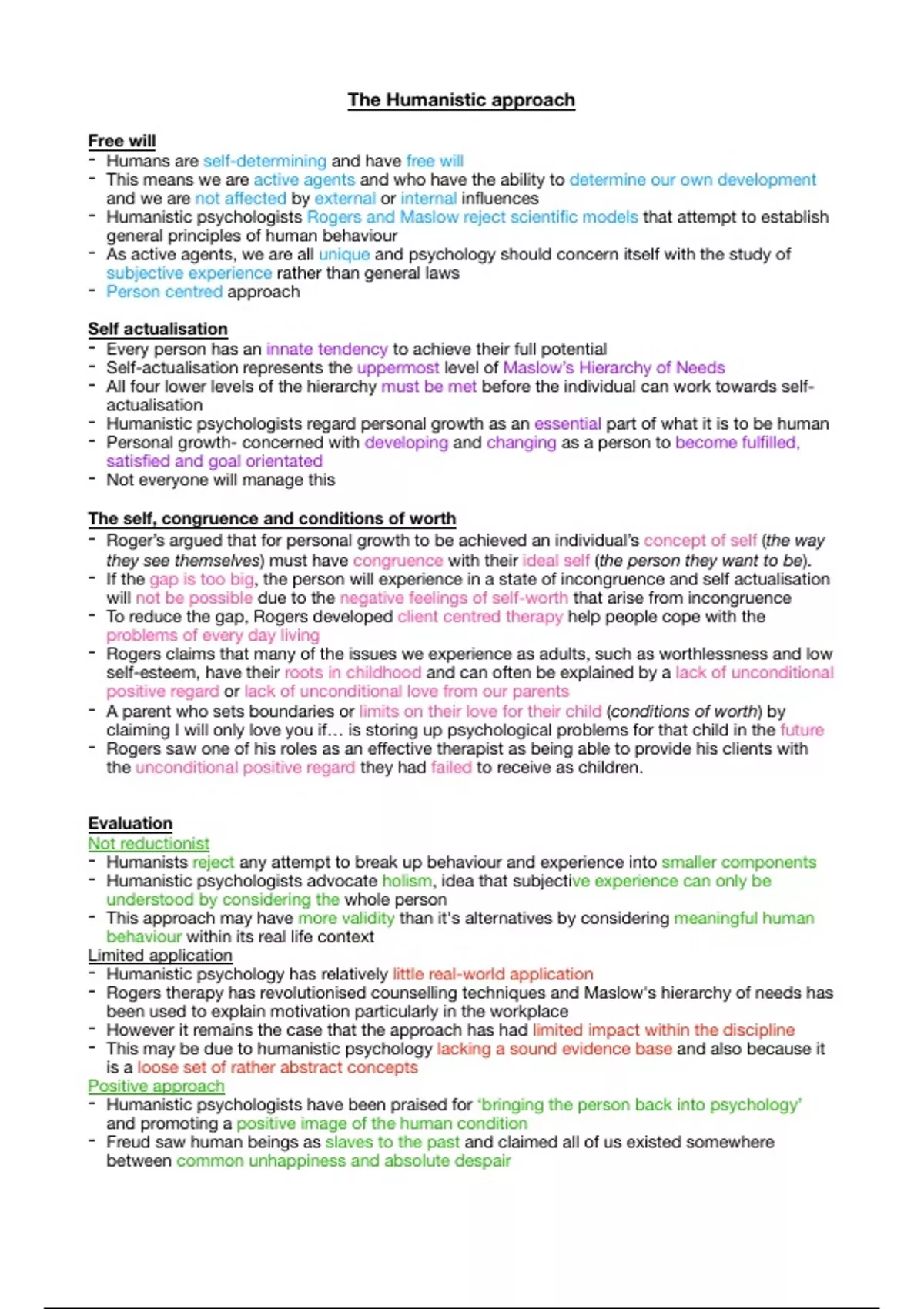 - Humanistic psychologists Rogers and Maslow reject scienti c models that attempt to establish