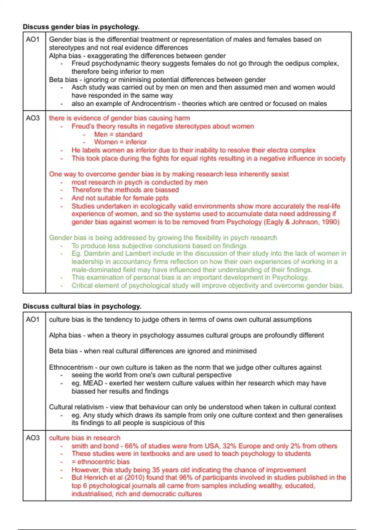 AO1 culture bias is the tendency to judge others in terms of owns own cultural assumptions