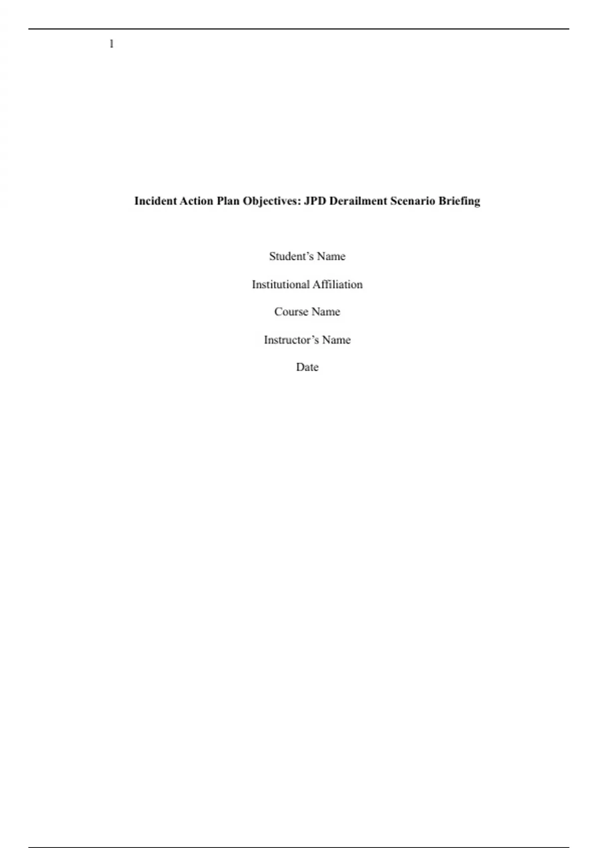 Incident Action Plan Objectives: JPD Derailment Scenario Briefing