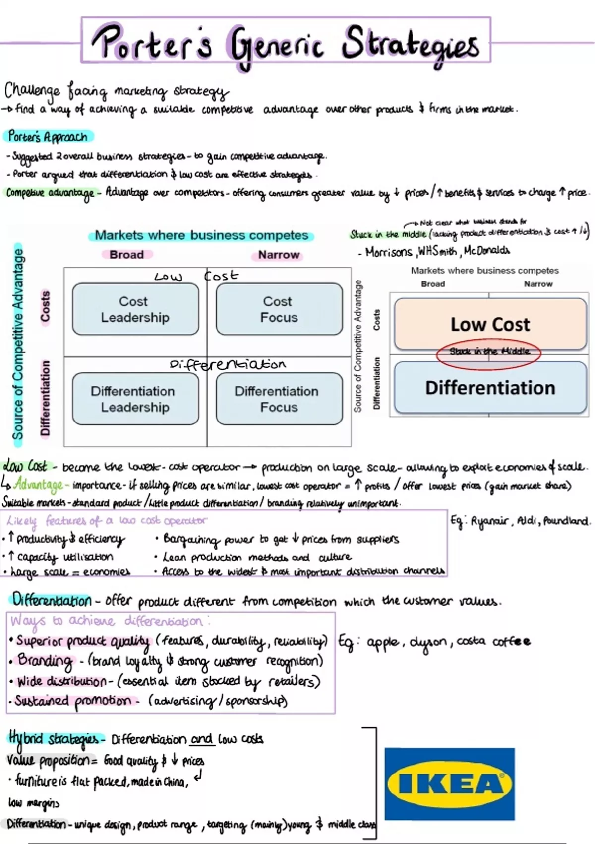 Porters Generic Strategies Theory AQA A-level Business Notes: -Includes the Model -Includes Company Examples