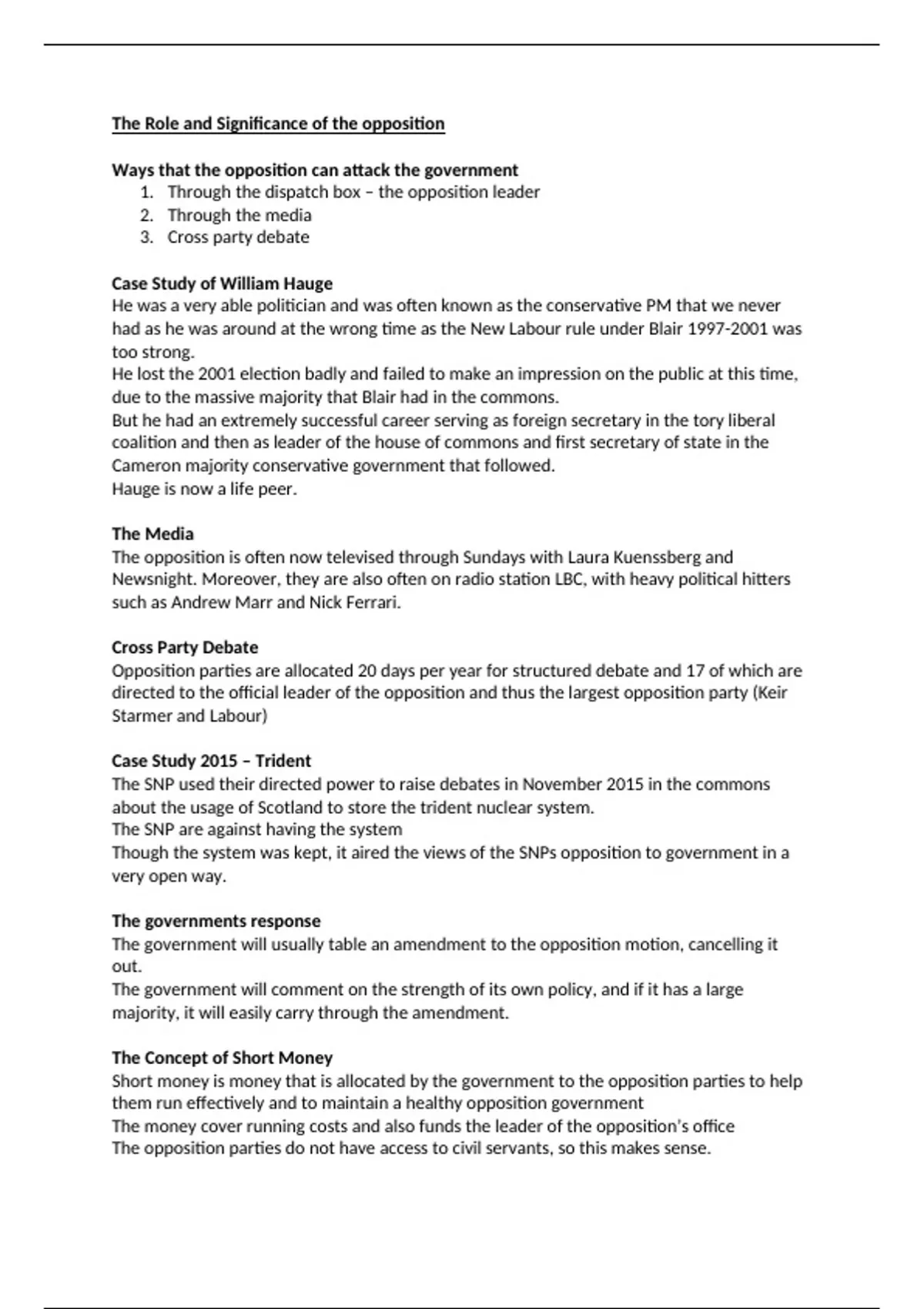 directed to the official leader of the opposition and thus the largest opposition party (Keir