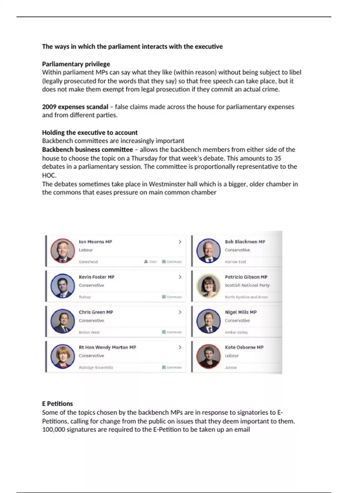 Summary A Level politics - the ways in which parliament interacts with the executive