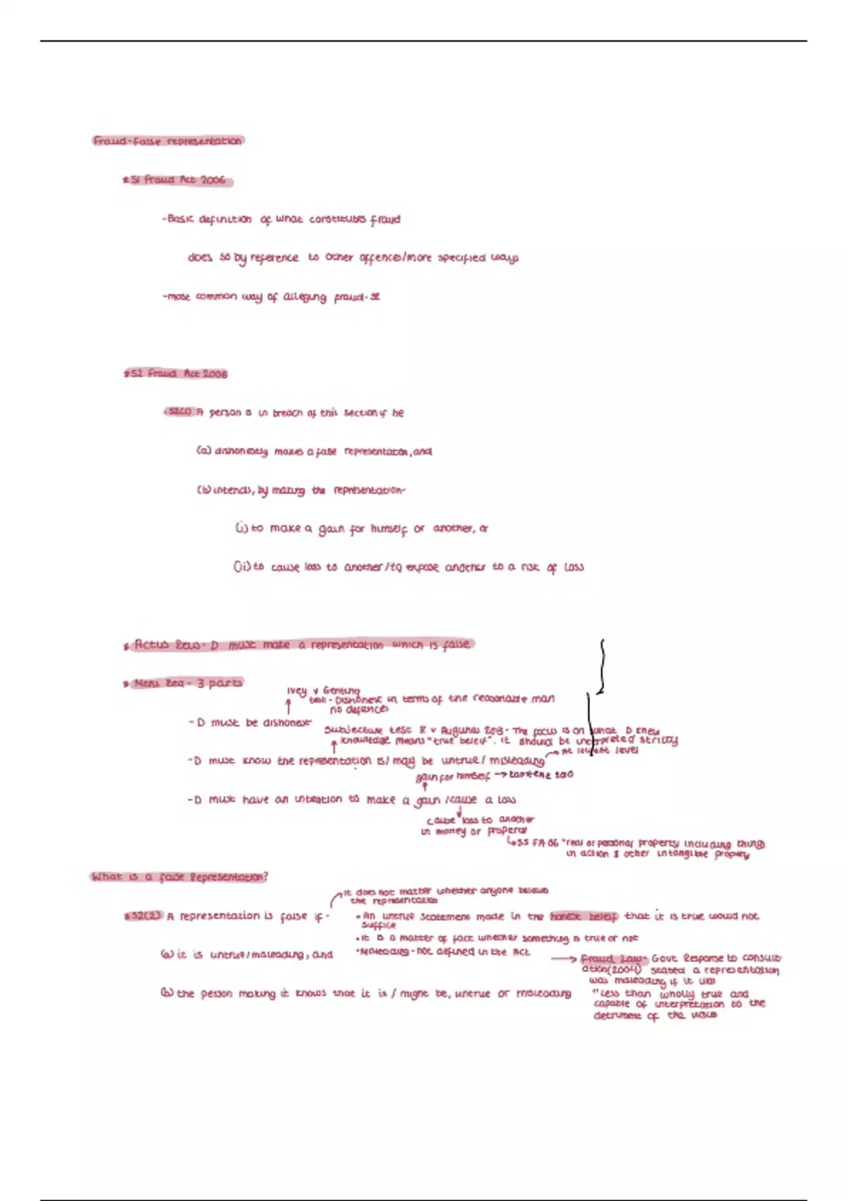Summary s2 Fraud False Representation