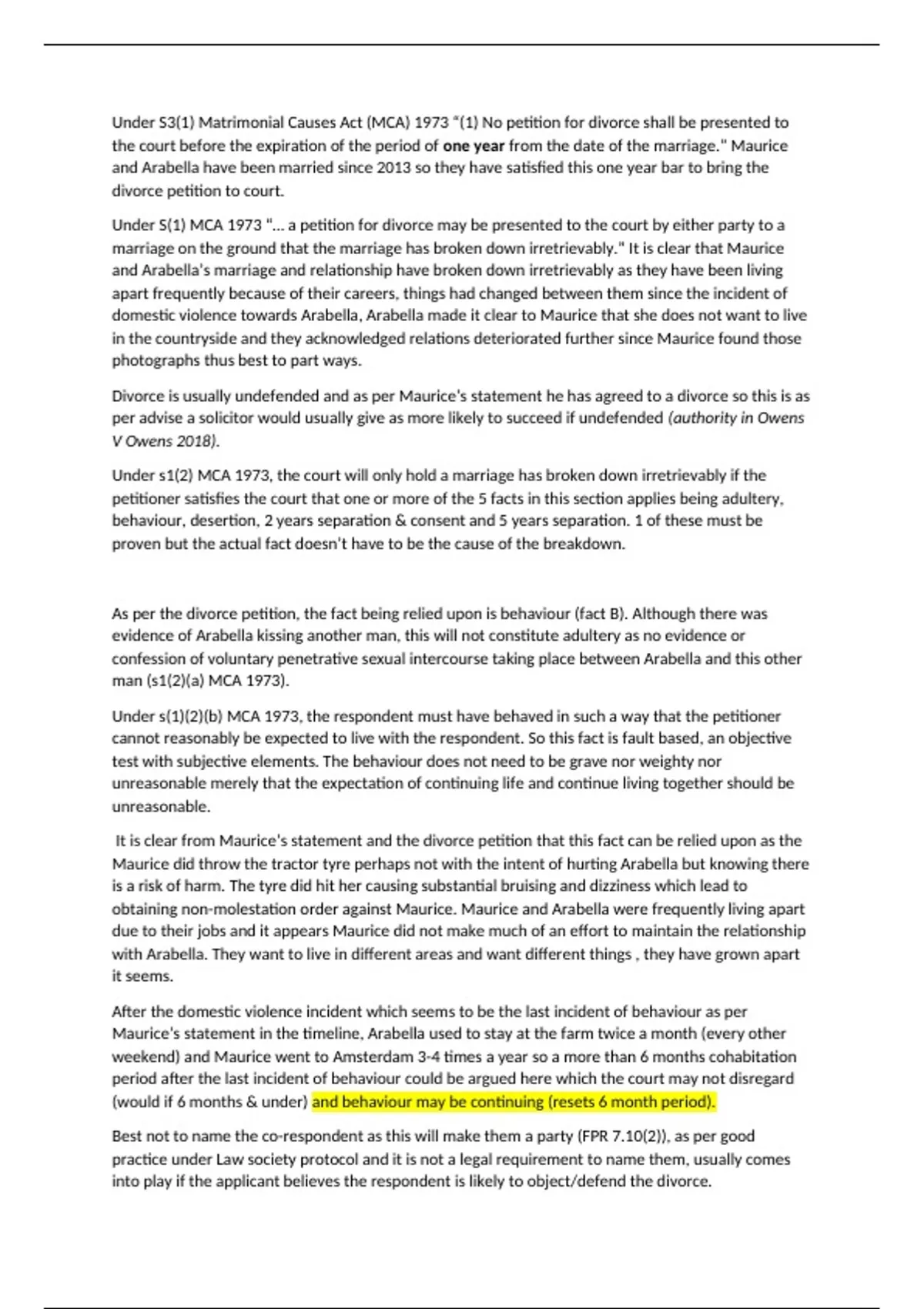 and Arabella have been married since 2013 so they have satisfied this one year bar to bring the