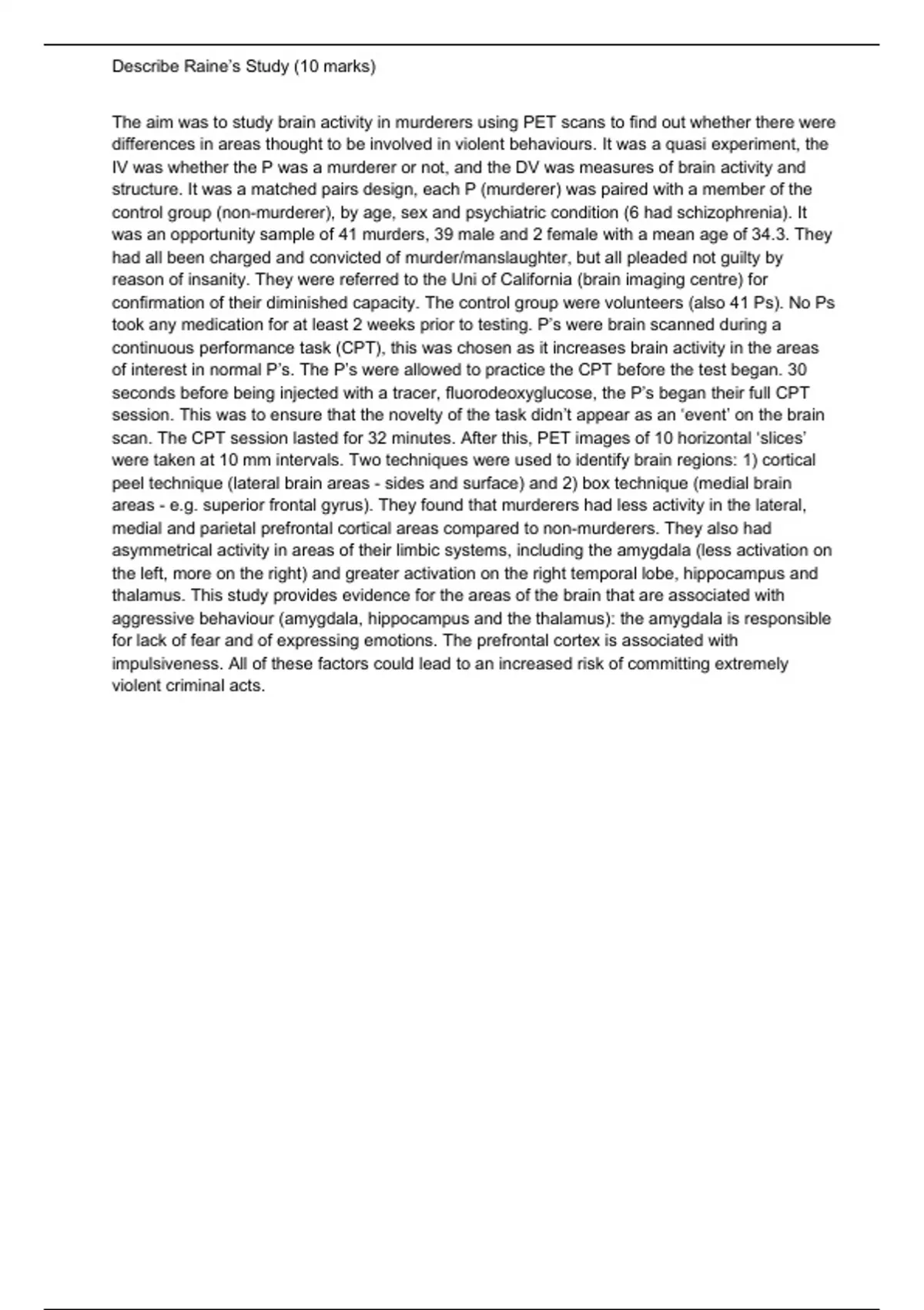 differences in areas thought to be involved in violent behaviours. It was a quasi experiment, the