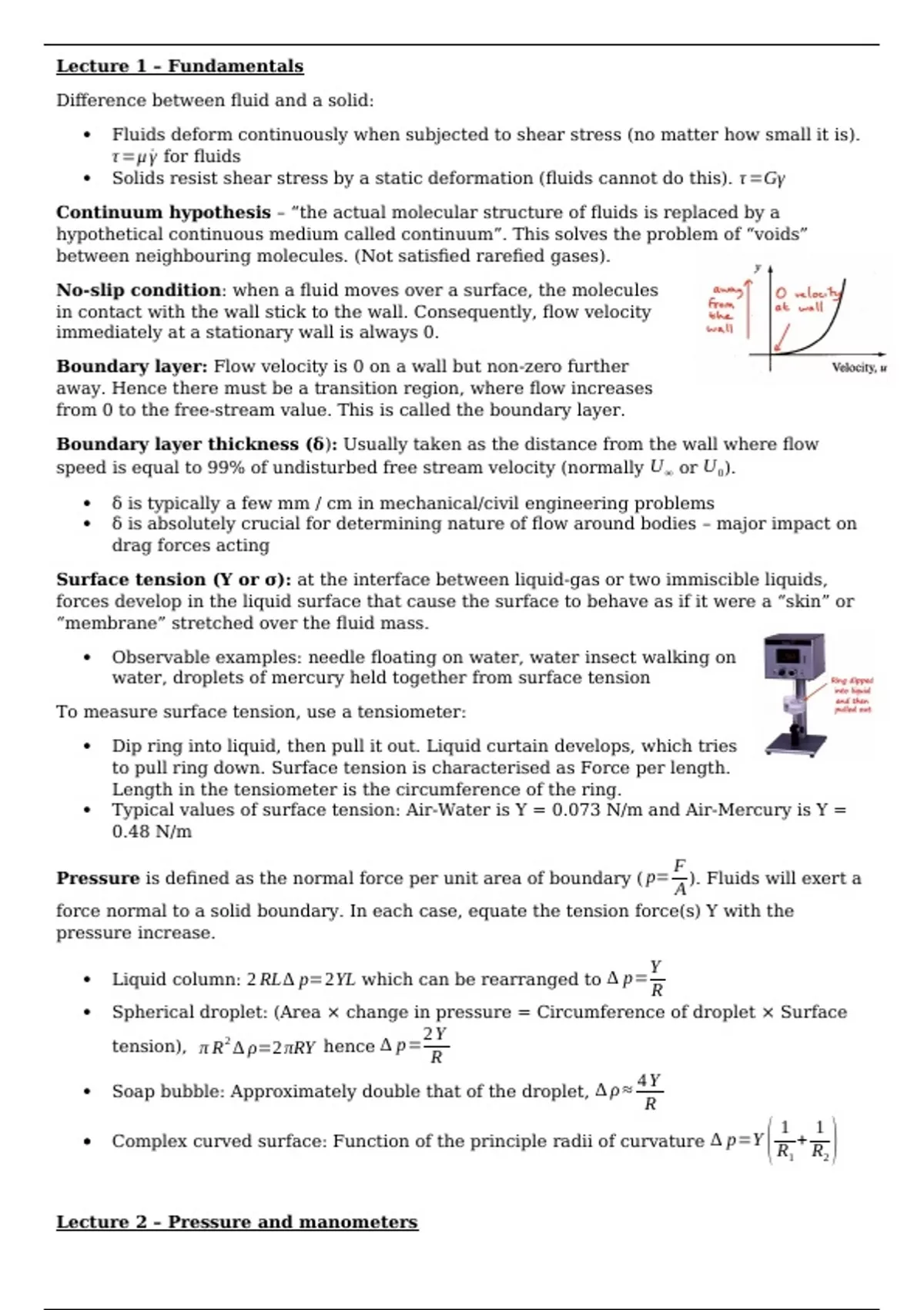 Lecture 2 – Pressure and manometers
