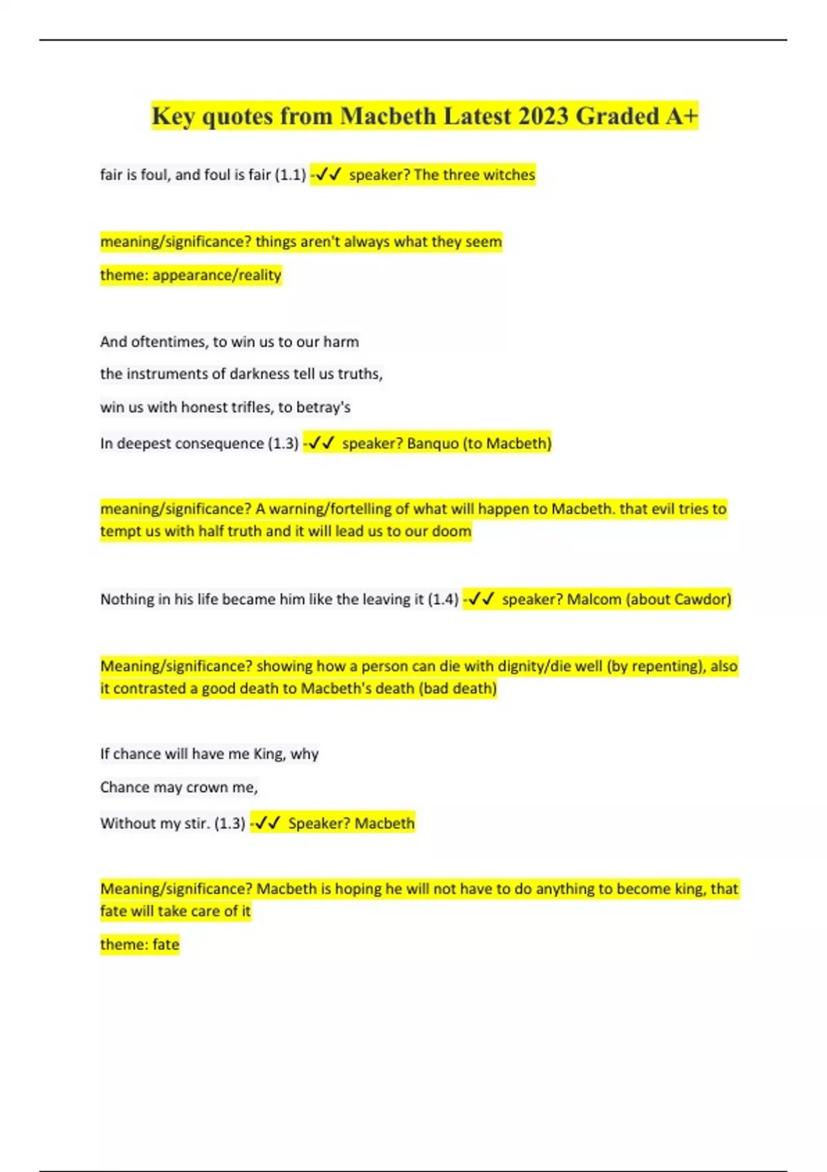Key quotes from Macbeth Latest 2023 Graded A+