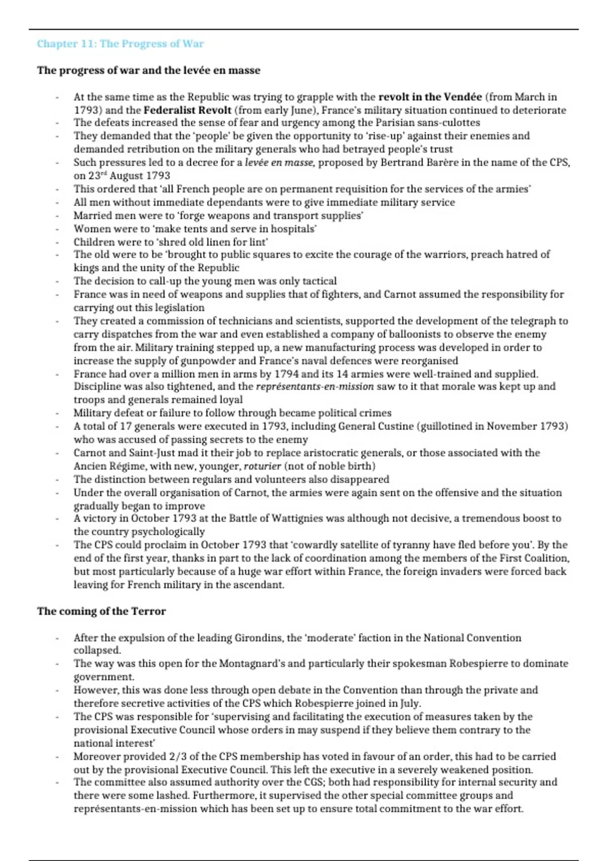 A-Level AQA History French Revolution Chapter 11 detailed summary