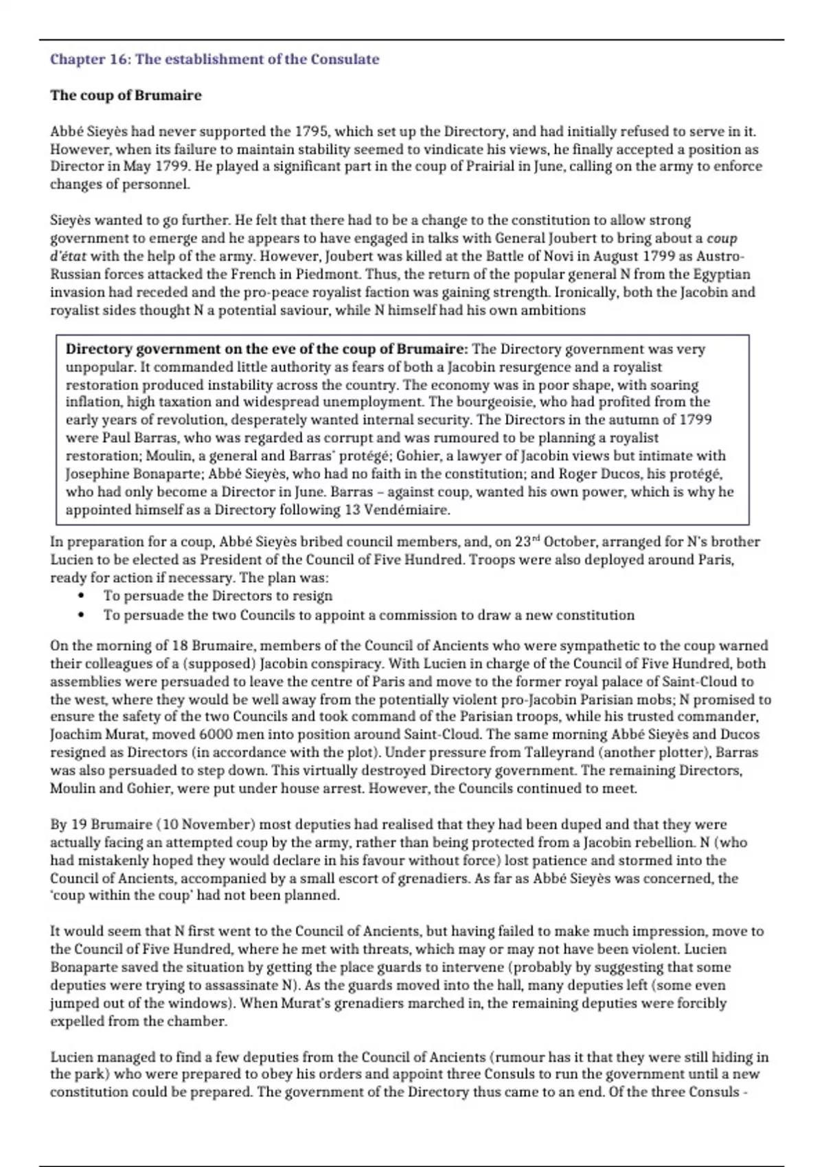who had only become a Director in June. Barras – against coup, wanted his own power, which is why he