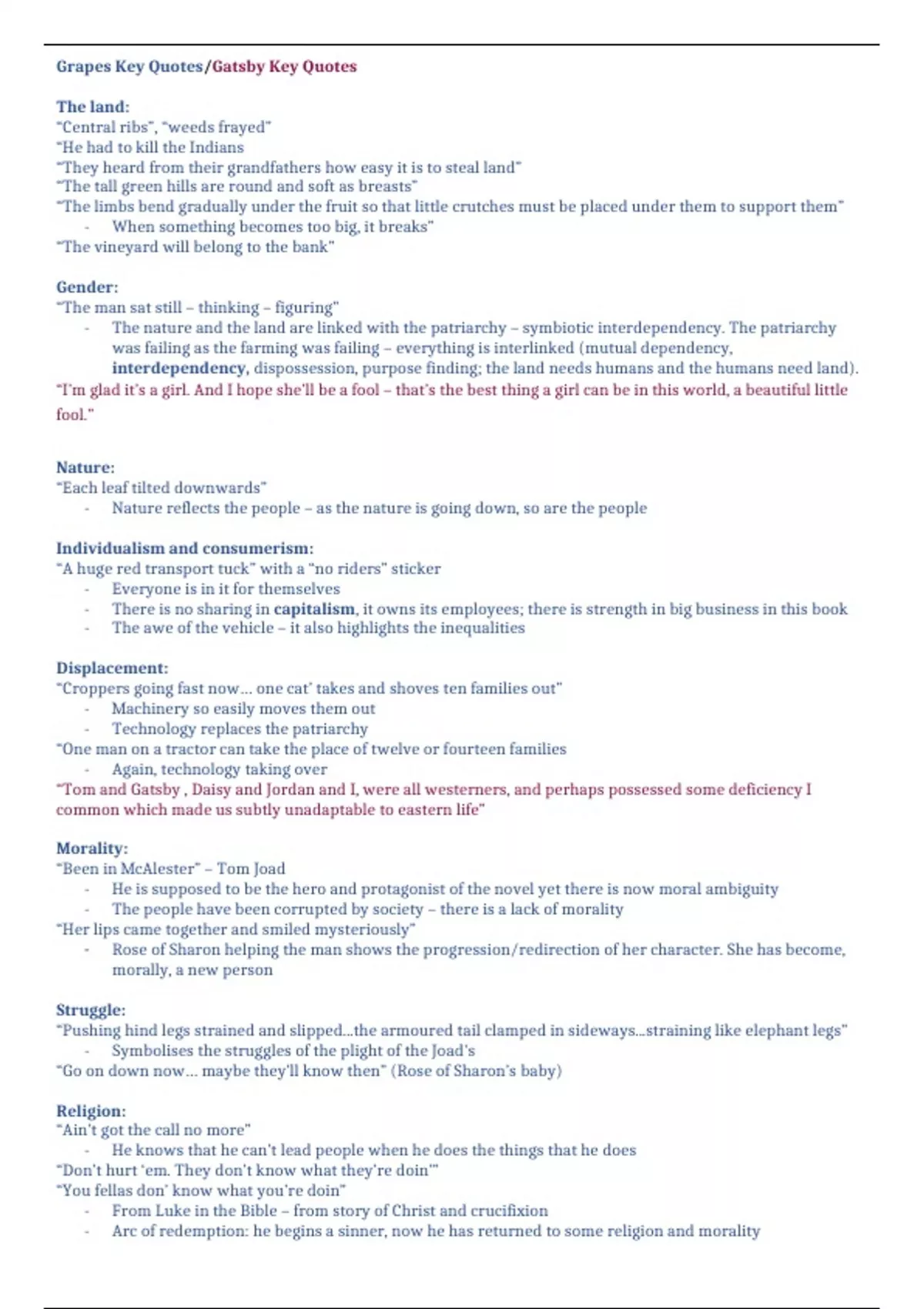 A-Level OCR English Literature Grapes of Wrath and The Great Gatsby comparing quotes