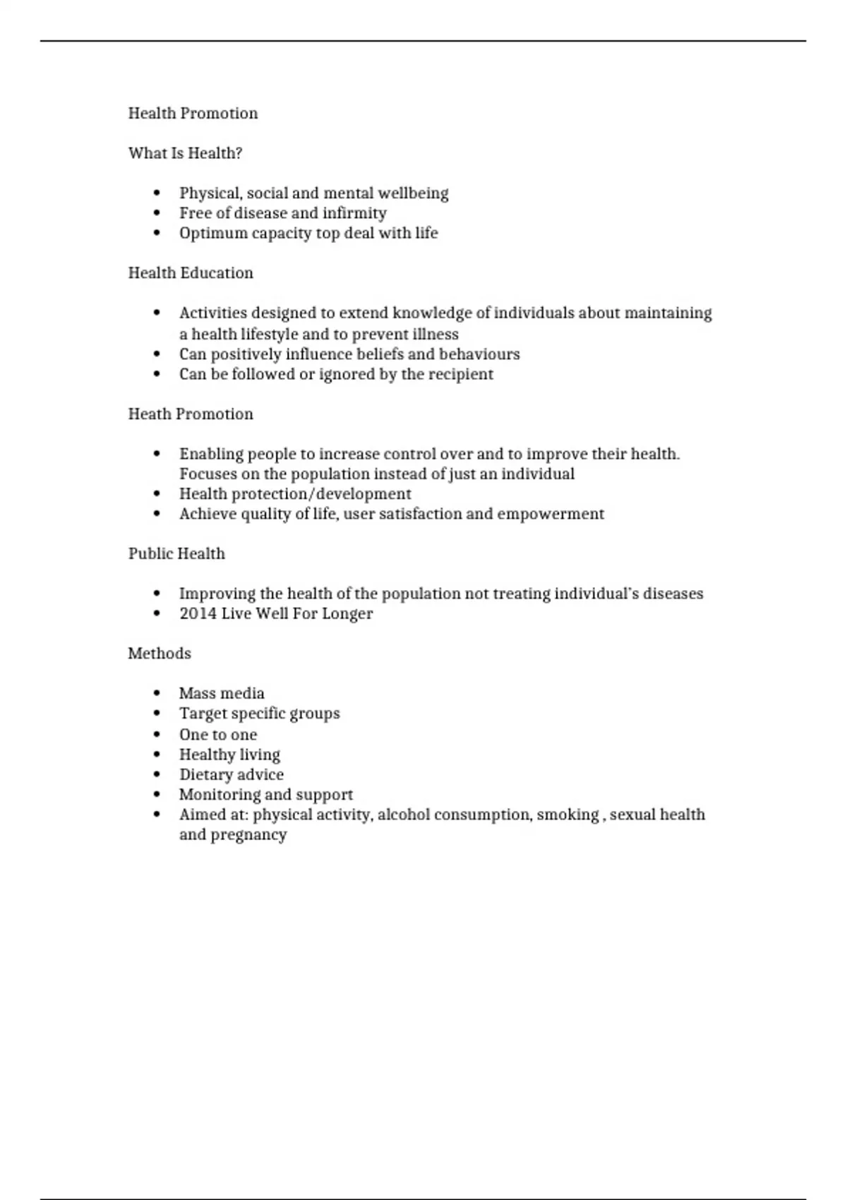 Summary Health promotion