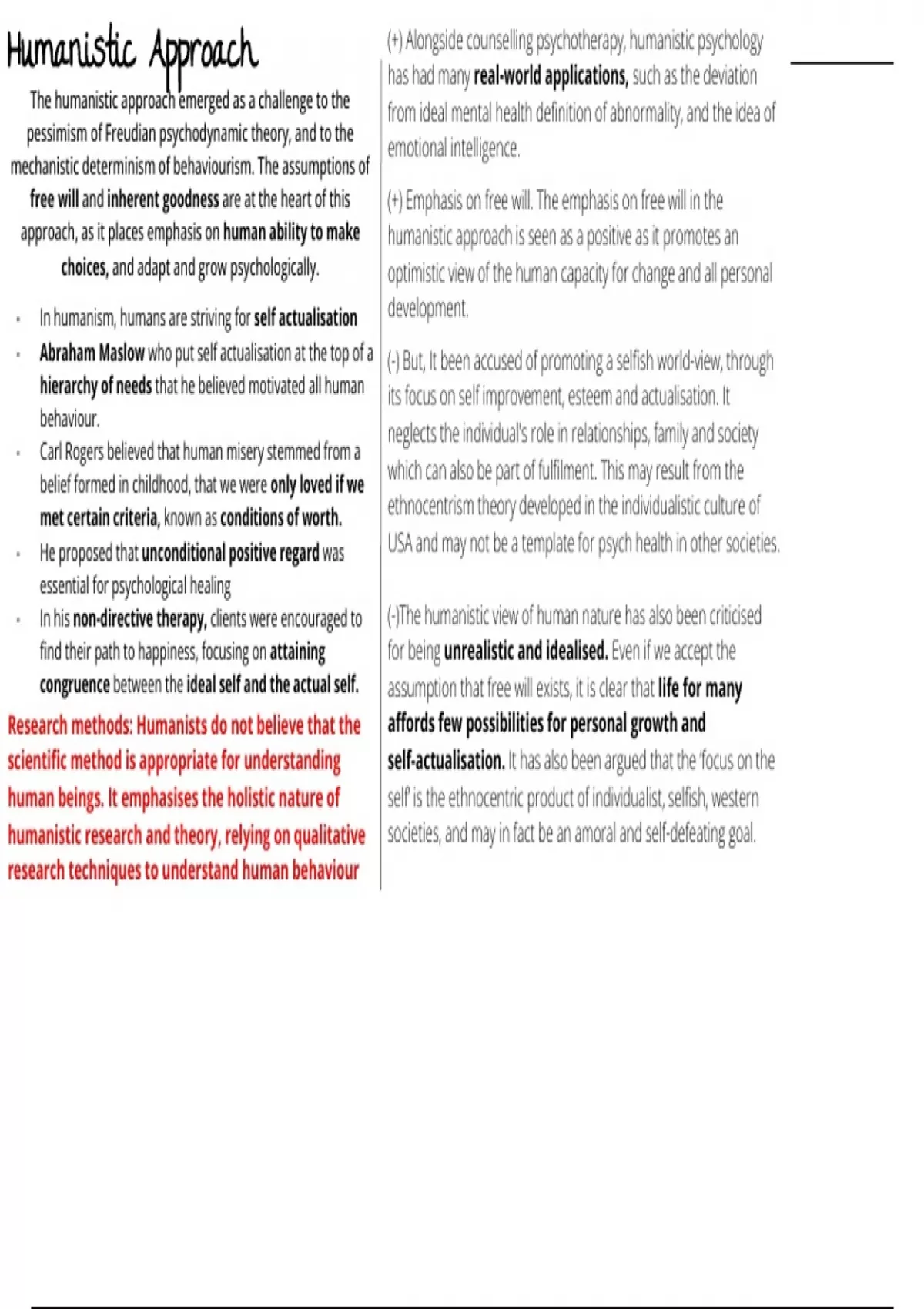 approach, as it places emphasis on human ability to make humanistic approach is seen as a positive as it promotes an
