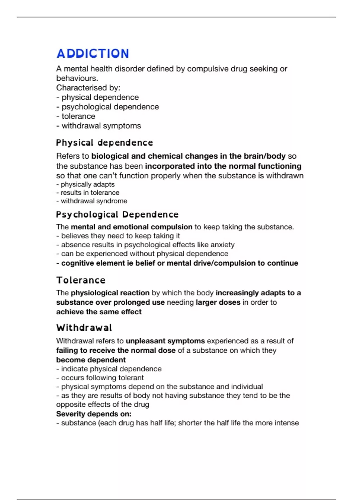 Withdrawal refers to unpleasant symptoms experienced as a result of