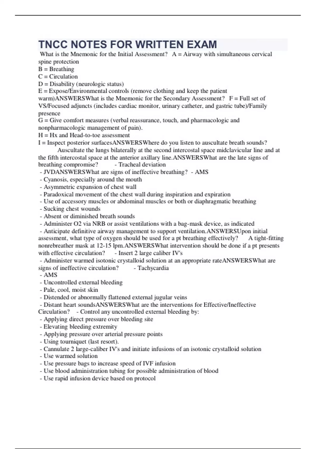 - PASG (without interfering with fluid resuscitation)ANSWERSHow do you assess Mnemonic