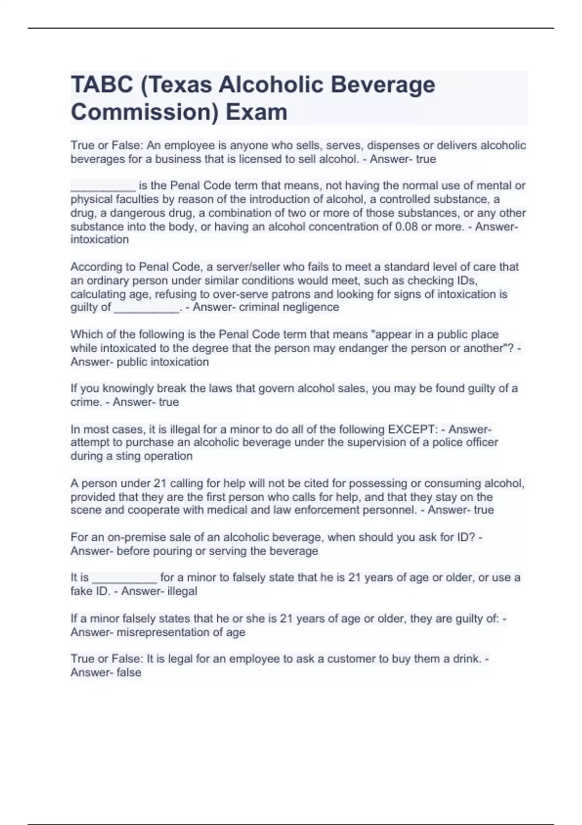 TABC (Texas Alcoholic Beverage Commission) Exam