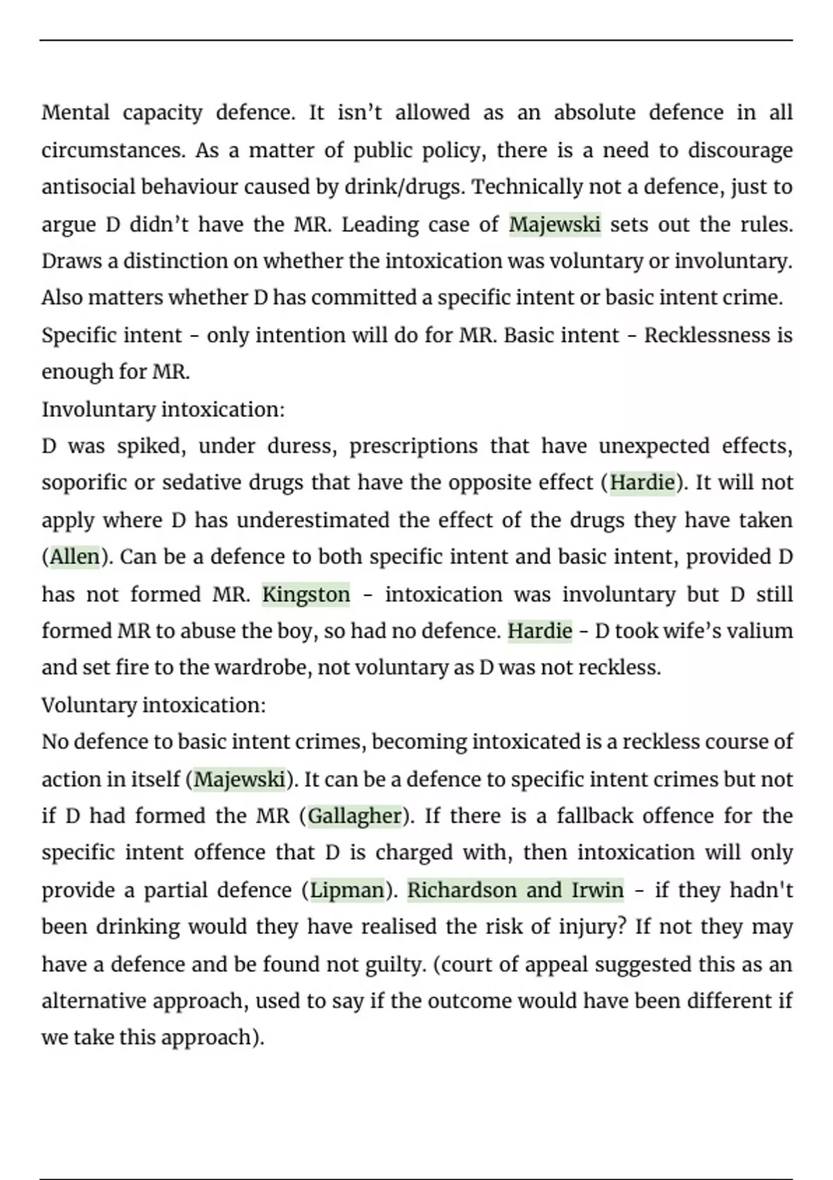 Mental capacity defence. It isn’t allowed as an absolute defence in all