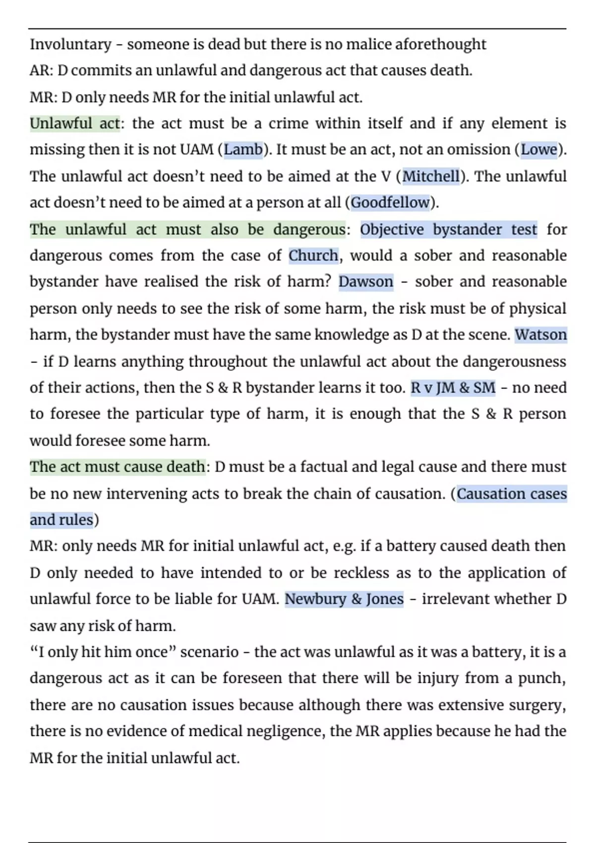 Summary of unlawful act manslaughter for OCR, written by an A* student