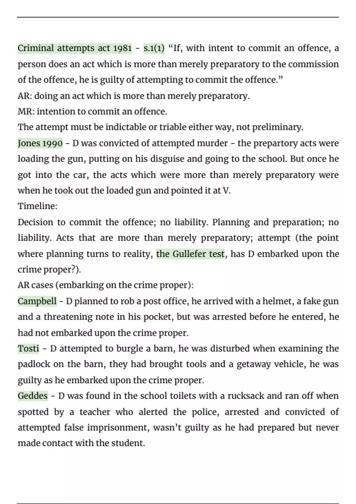 Summary of preliminary offences including attempted offences and impossibility for OCR, written by an A* student