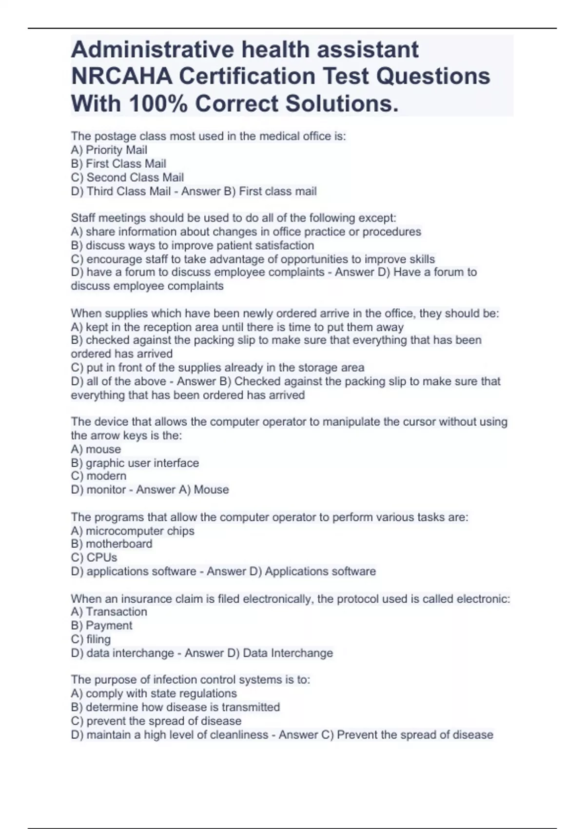 Administrative health assistant NRCAHA Certification Test Questions With 100% Correct Solutions.