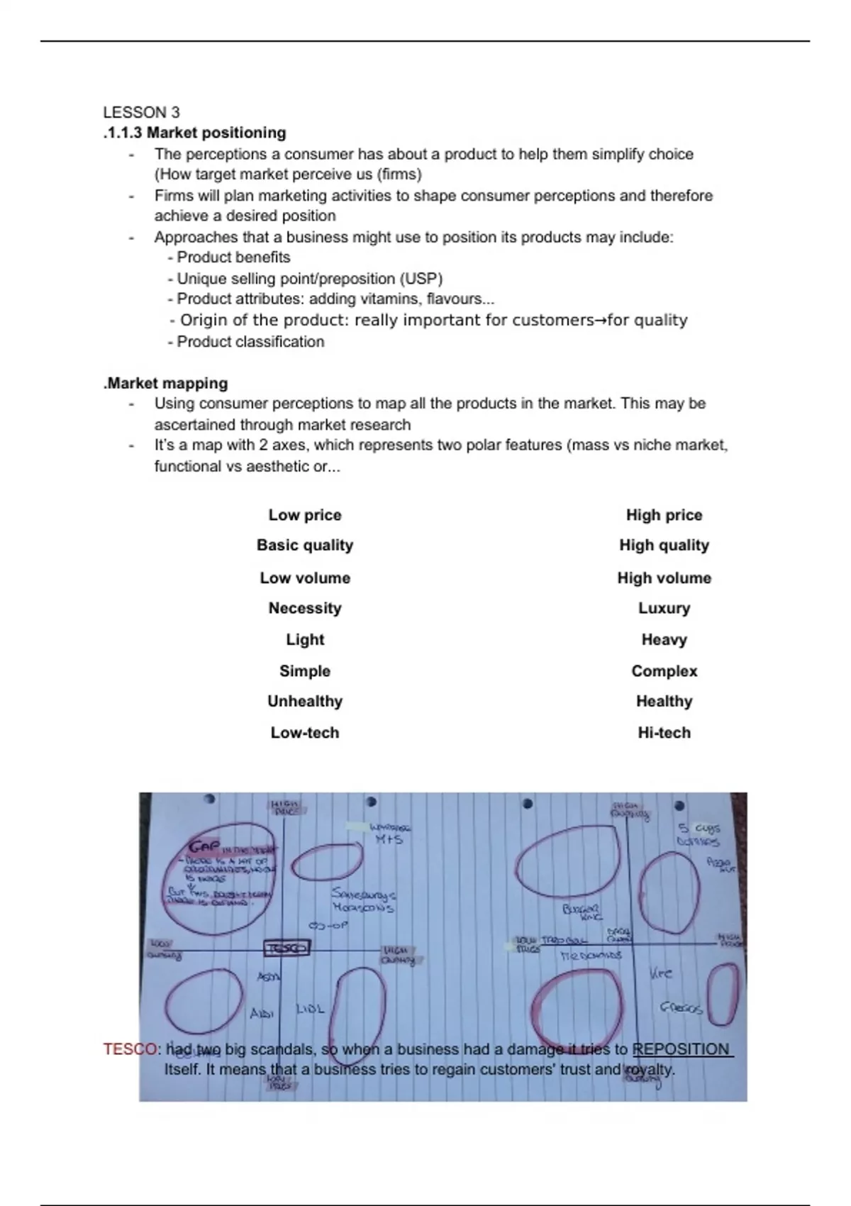 TESCO: had two big scandals, so when a business had a damage it tries to REPOSITION