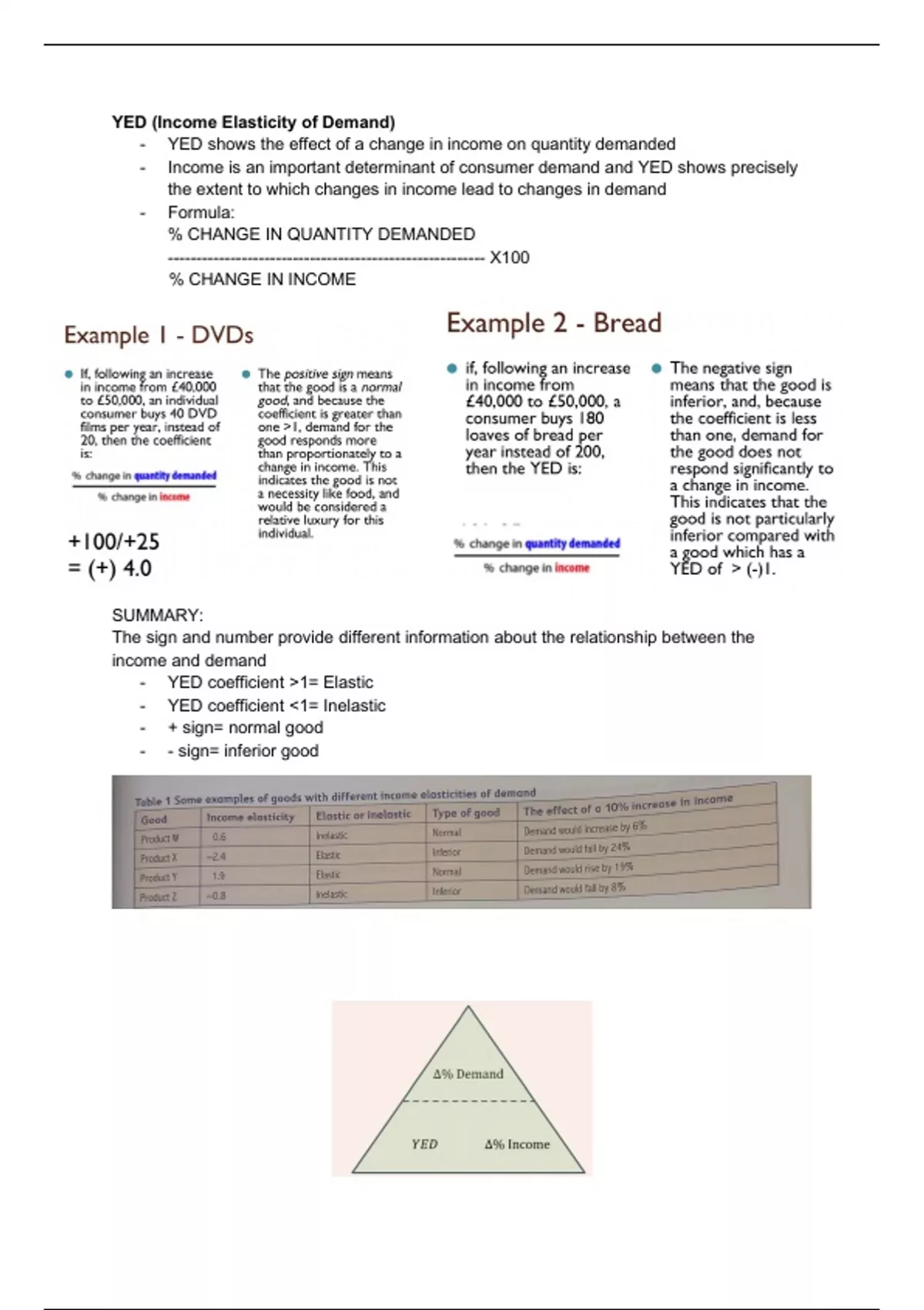 - YED shows the effect of a change in income on quantity demanded