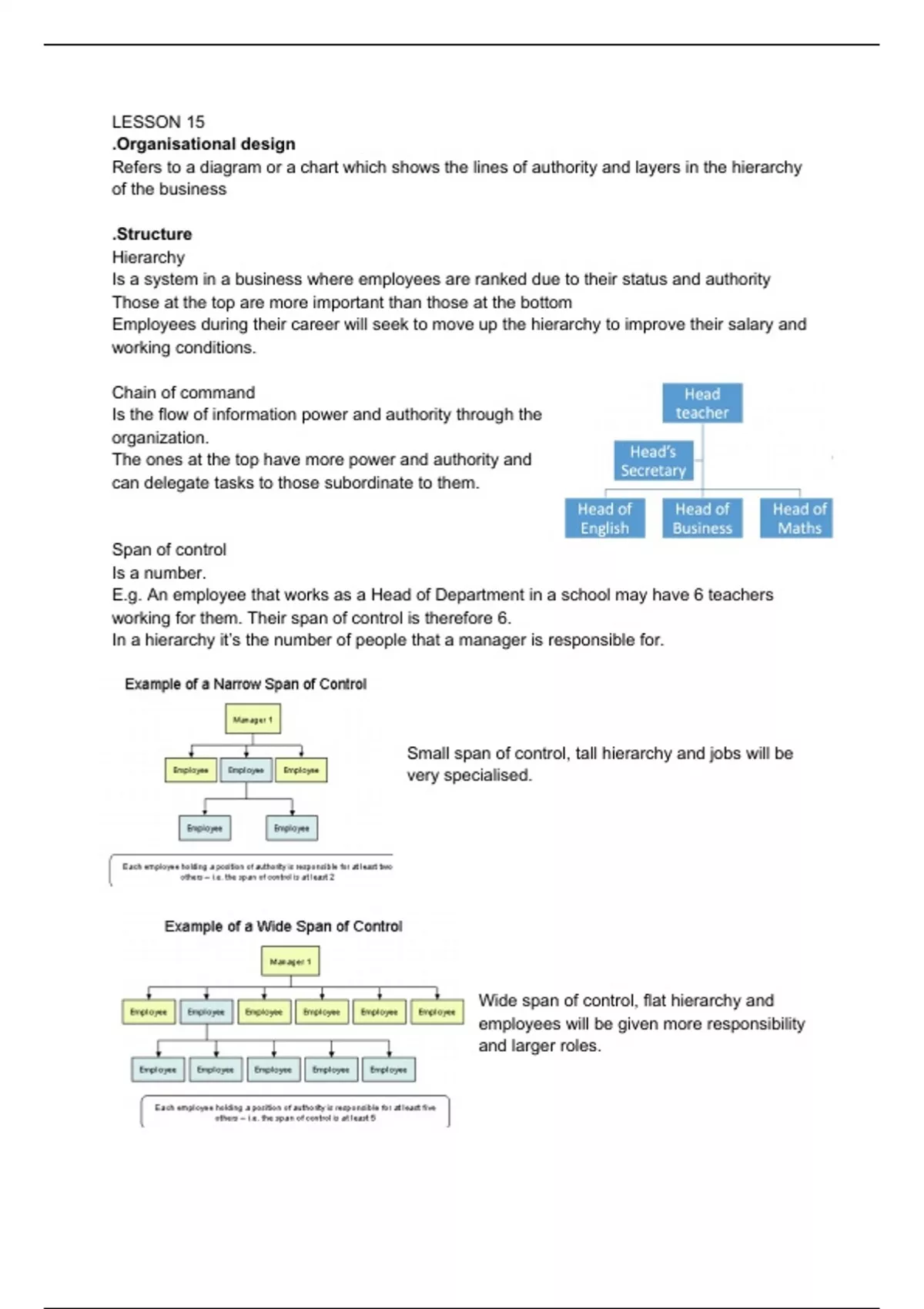 In this lecture notes you will find in depth notes for the topic "Organisational design" Theme 1 of Edexcel A level business which is called marketing and people.The textbook "Edexcel AS/A level BUSINESS, 5th edition, Pearson" is referenced in these lecture notes. They are really well written and simple to read and understand. They make learning 100% easier as I have worked really hard to write these challenging concepts in a simpler way, combining power points, lecture notes and book. It really helped me achieve high grades such as A's and B's, but most importantly these notes helped me remember the material over the long term, making it easier to revise for the final exam. This method of studying and revision has proven to be quite efficient and stress-free for me.