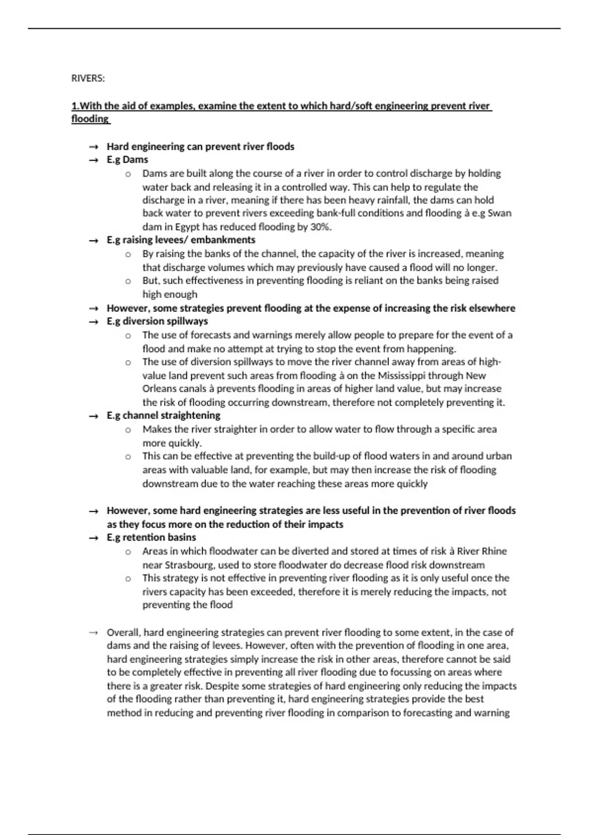 1.With the aid of examples, examine the extent to which hard/soft engineering prevent river