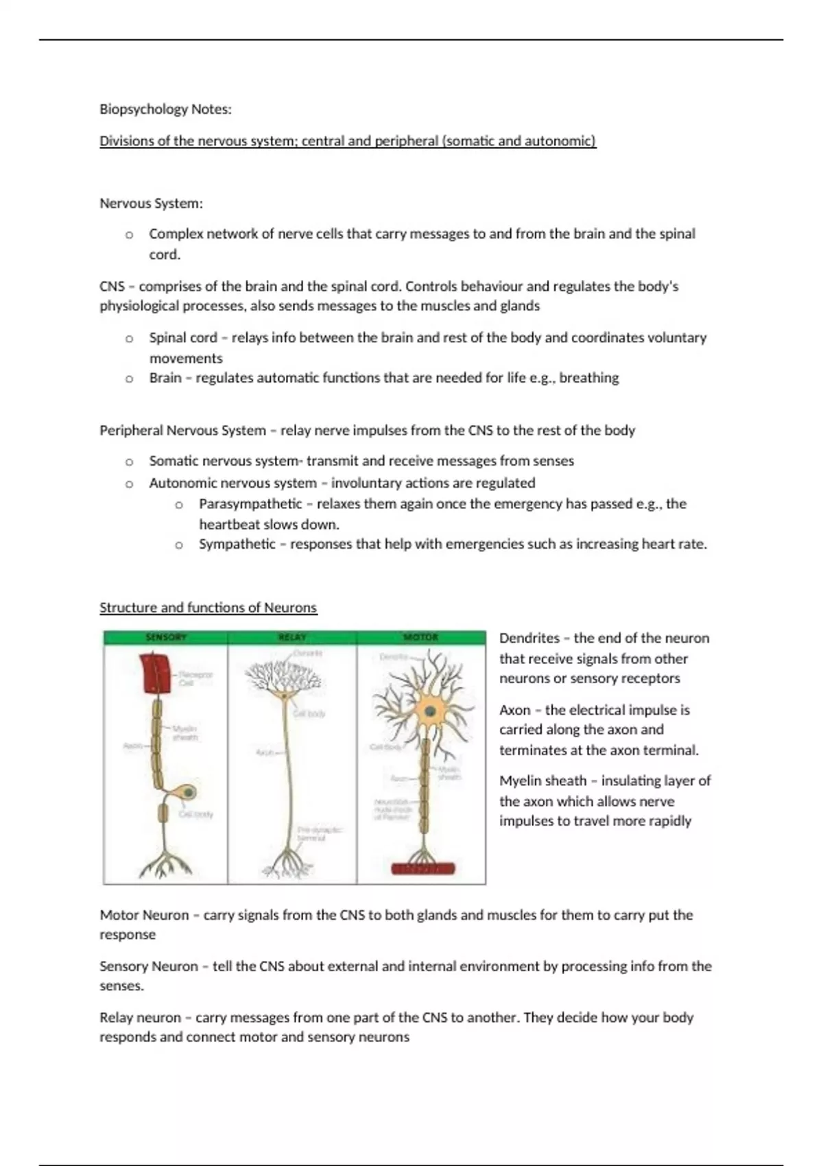 Biopsychology Notes: