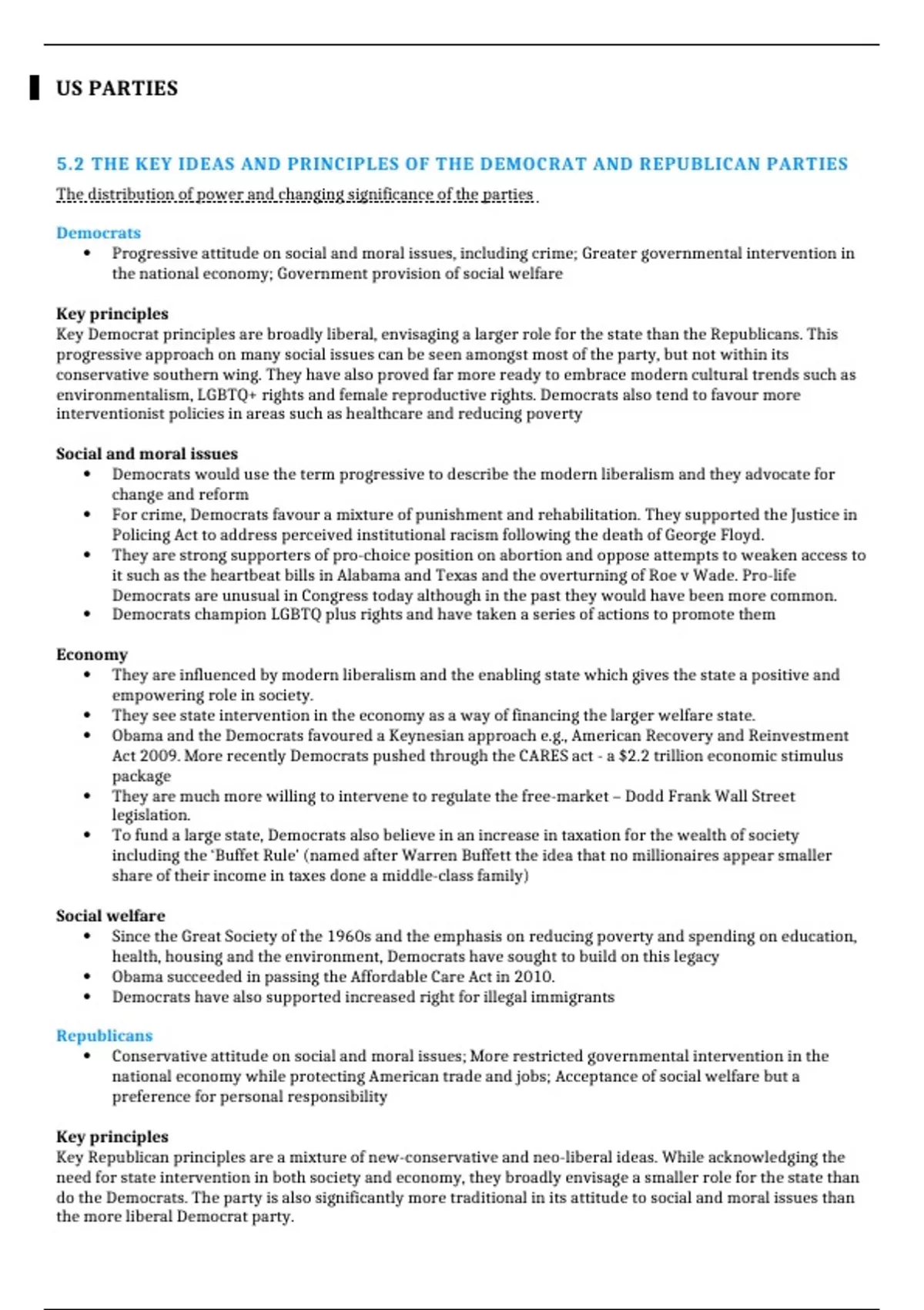 5.2 THE KEY IDEAS AND PRINCIPLES OF THE DEMOCRAT AND REPUBLICAN PARTIES