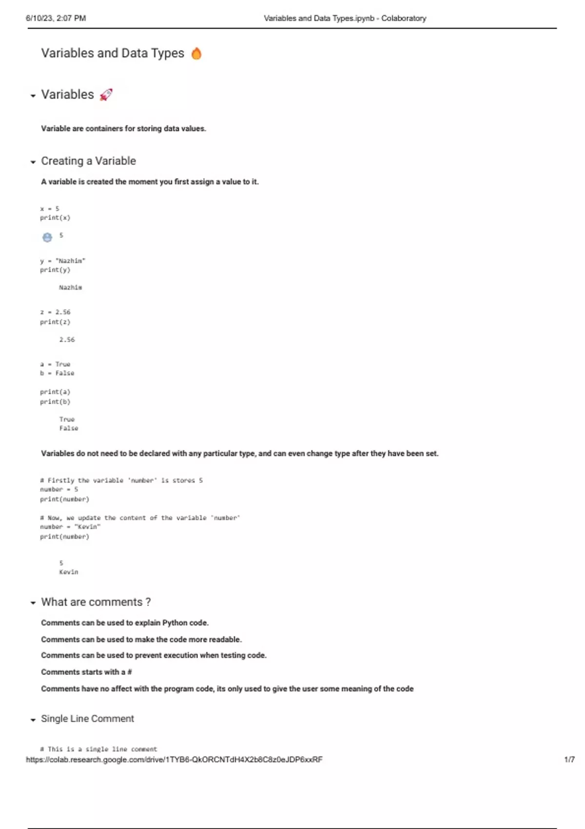 , 6/10/23, 2:07 PM Variables and Data Types.ipynb - Colaboratory