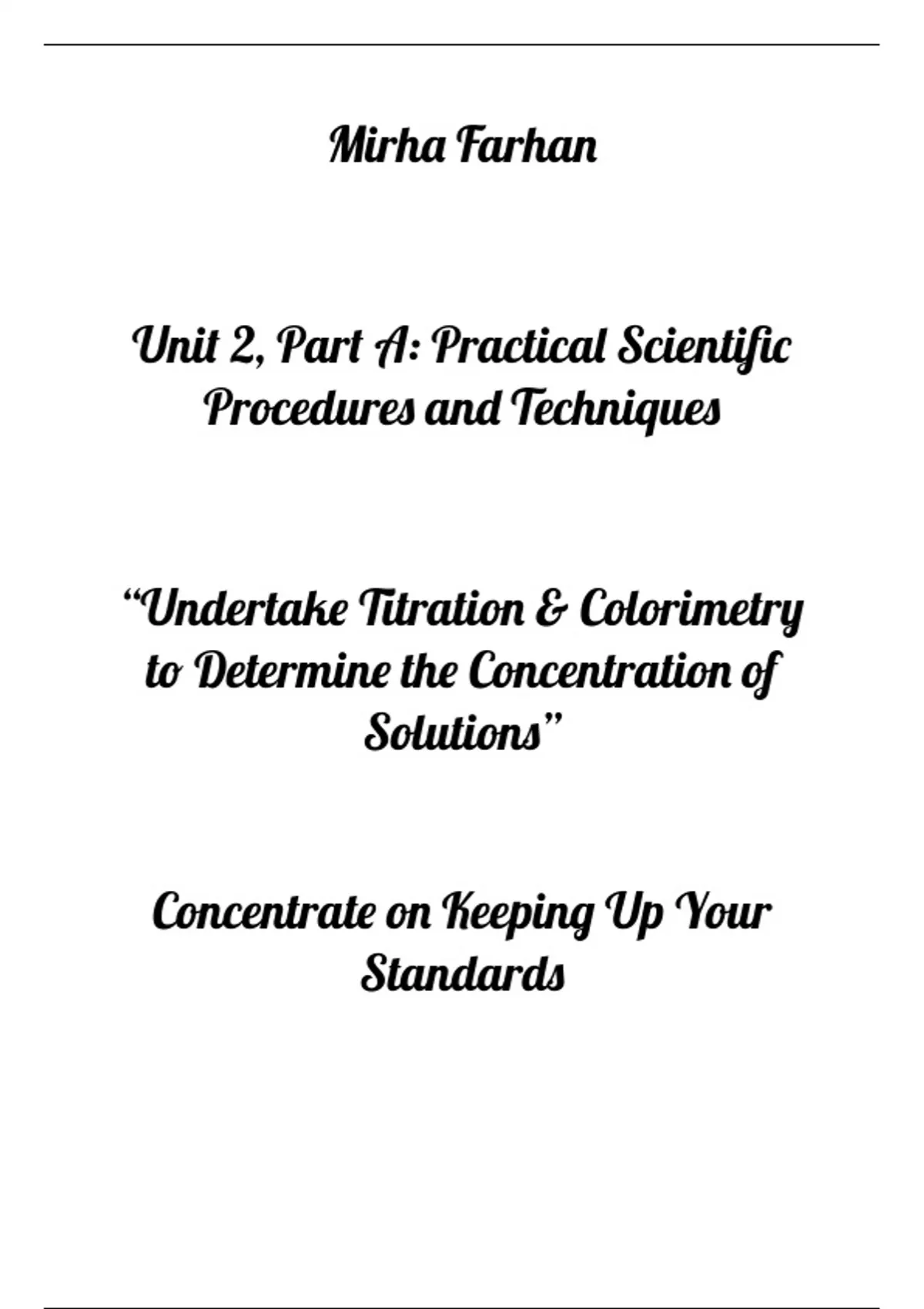 (DISTINCTION) Unit 2, Learning Aim A: Undertake titration and colorimetry to determine the concentration of solutions