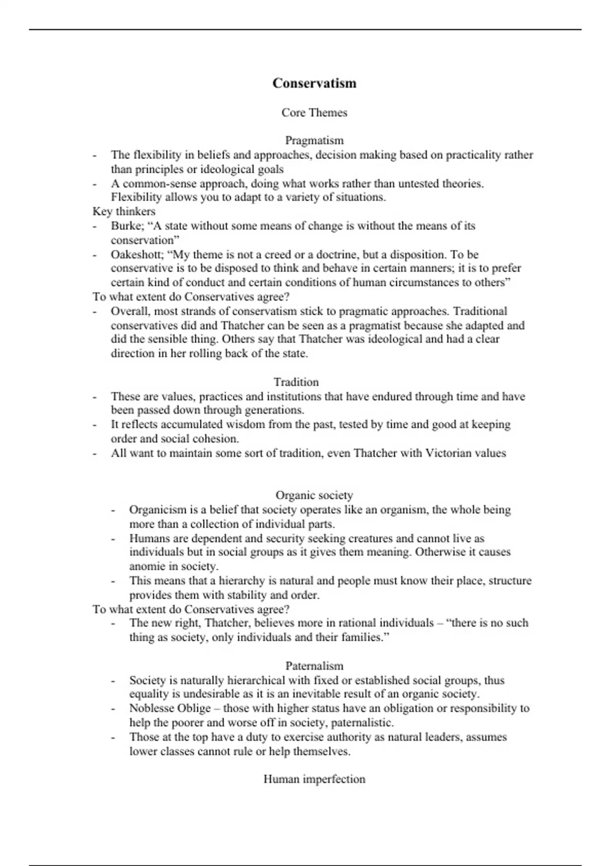- Oakeshott; “My theme is not a creed or a doctrine, but a disposition. To be